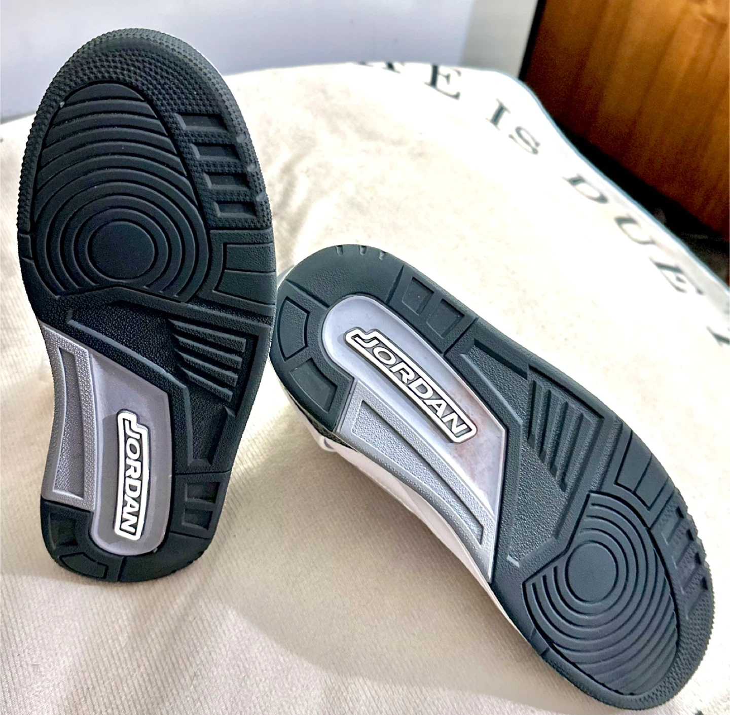 Selling a pair of Jordan 3 Retro in the cilassic White Cement colorway. These are a US size 5Y. They have some signs of wear, but still have plenty of life left!