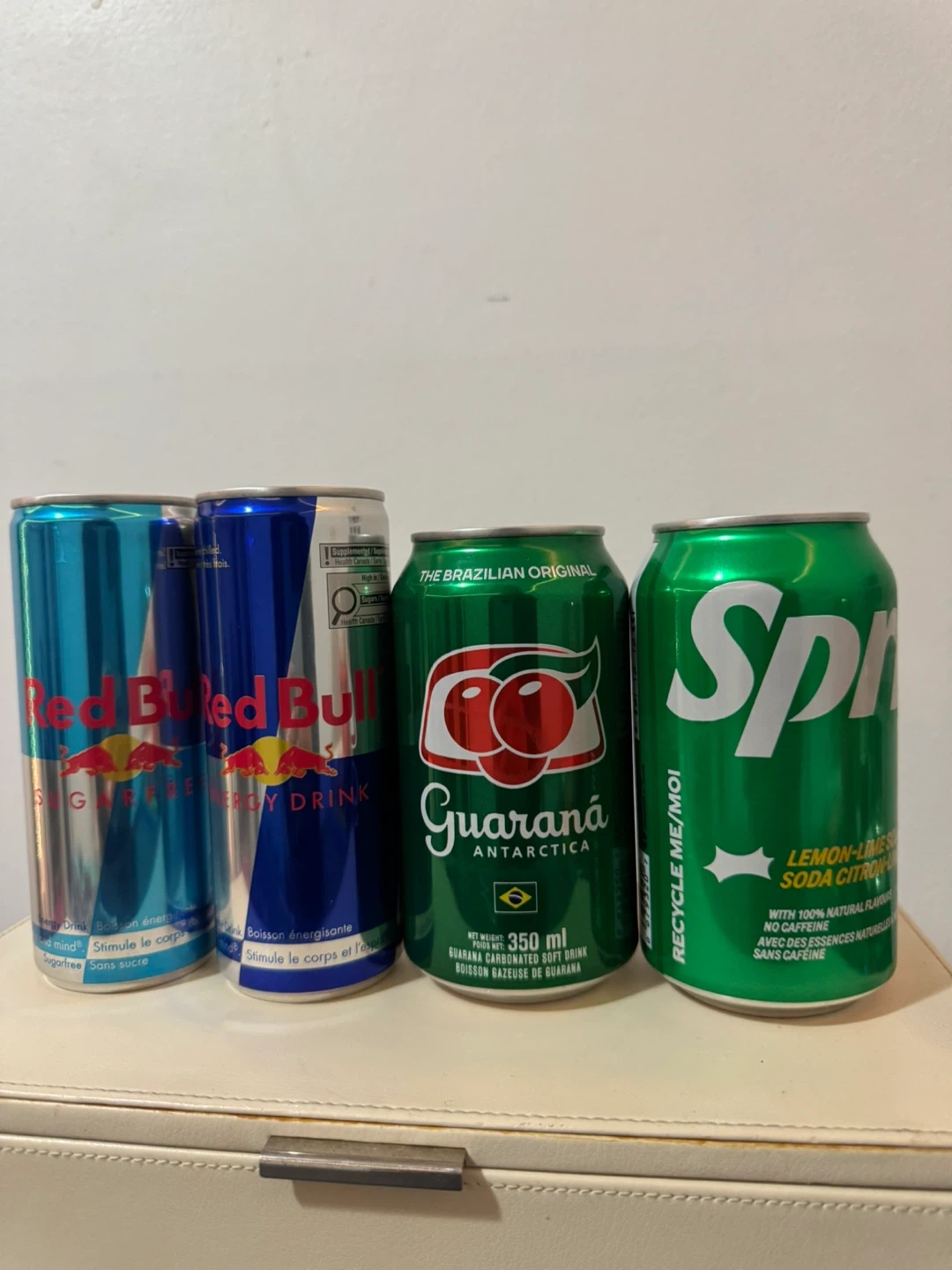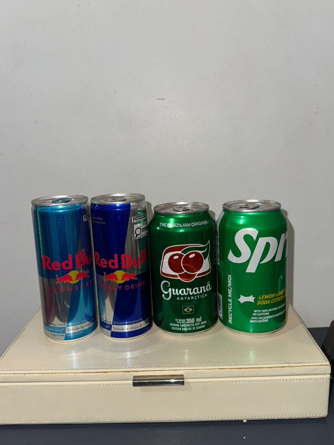 1000+Selling a variety pack of canned drinks! Includes Red Bull (sugarfree and regular), Guaraná Antarctica, and Sprite. All cans are 350ml. Selling all for $5 🙃 All new and not expired