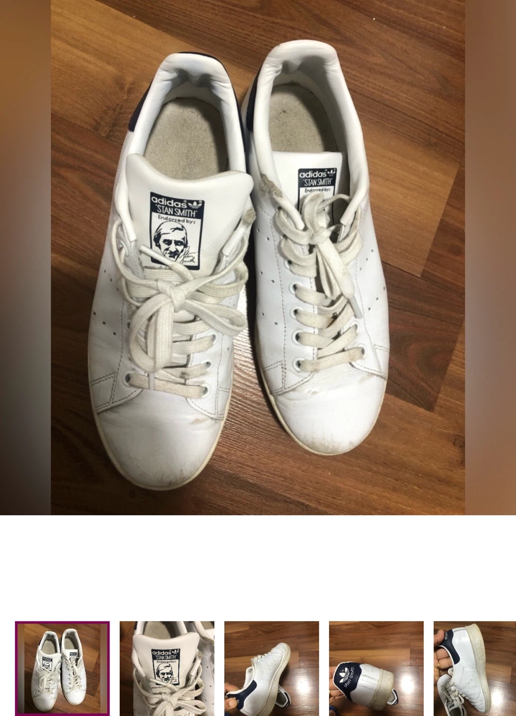 These are a pair of used Adidas Stan Smith sneakers, perfect for casual wear! Although they've been worn, they still have plenty of life left and are ready for a new owner. A classic and comfortable choice for everyday style, they're sure to complement any outfit. If the ad is up, they are available!