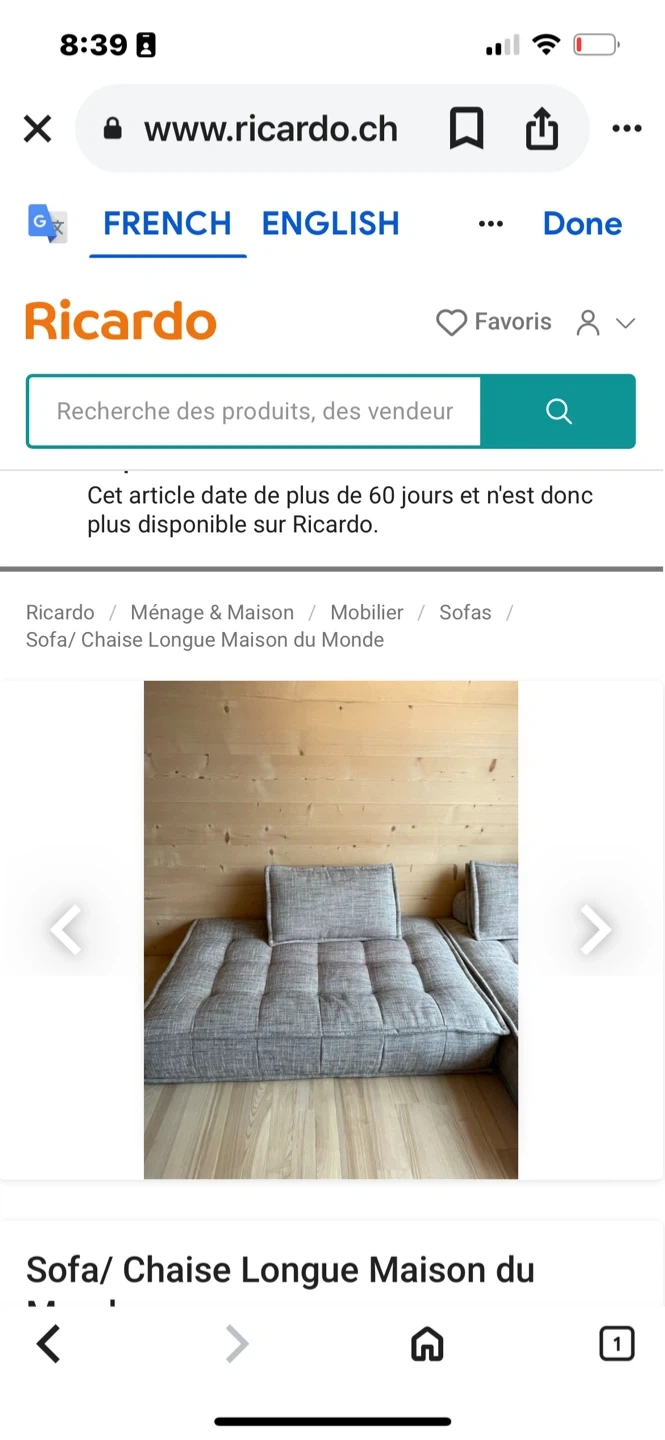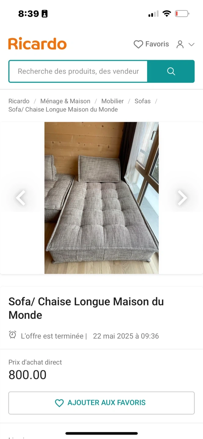 Selling a Maison du Monde sofa/chaise longue. Super comfortable – can easily be used as a sleeper.
