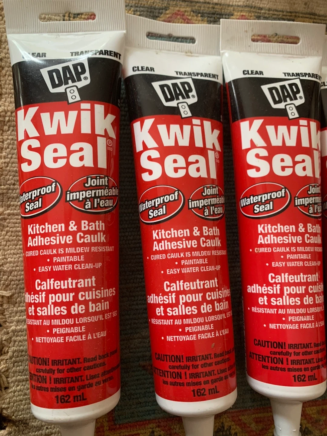 25Selling tubes of DAP Kwik Seal Kitchen & Bath Adhesive Caulk. It's waterproof and paintable, making it perfect for your kitchen and bathroom sealing needs. Easy to clean up with water too! $3 a tube
