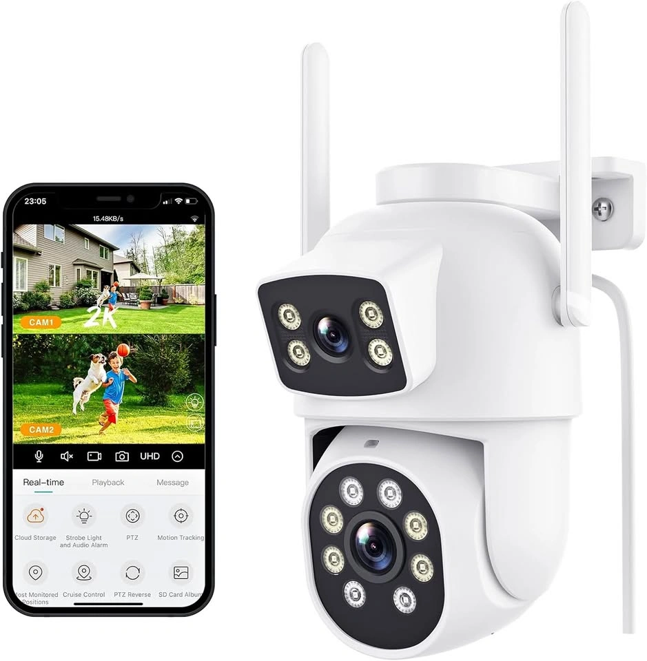 Reobiux Dual Lens Security Camera Outdoor, 6MP WiFi CCTV Camera