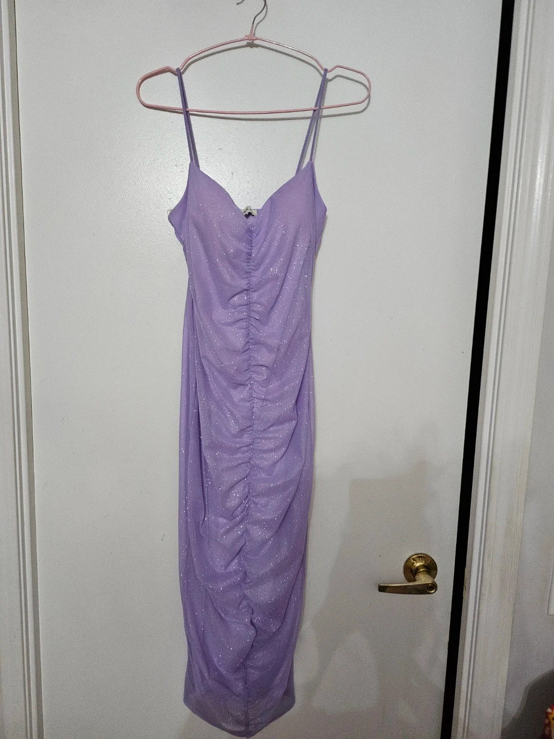1000+Selling a cute lilac dress from Lovely Day! It features a flattering ruched design and is a size small. Perfect for a night out or special occasion!