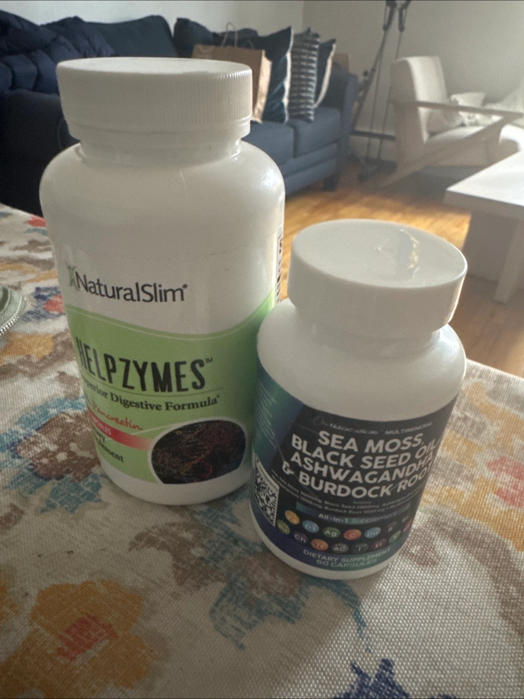 Selling two supplements: NaturalSlim Helpzymes Superior Digestive Formula and Nutracuticals Sea Moss, Black Seed Oil, Ashwagandha & Burdock Root All-in-1 Supplement
