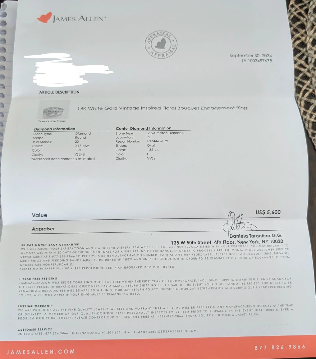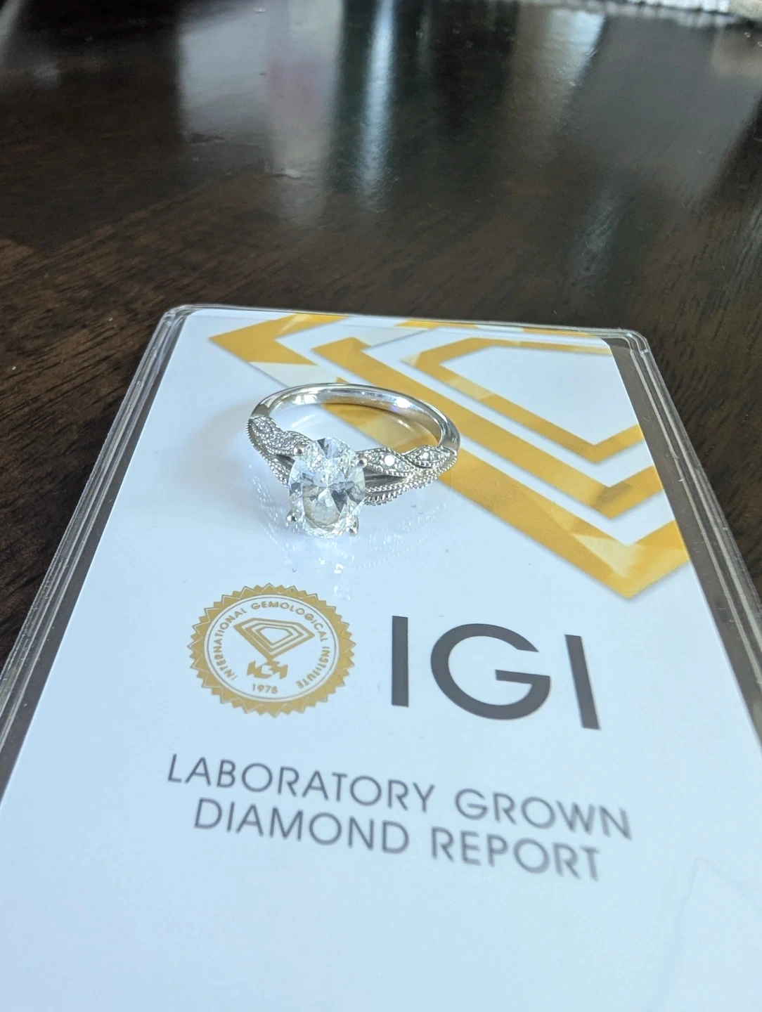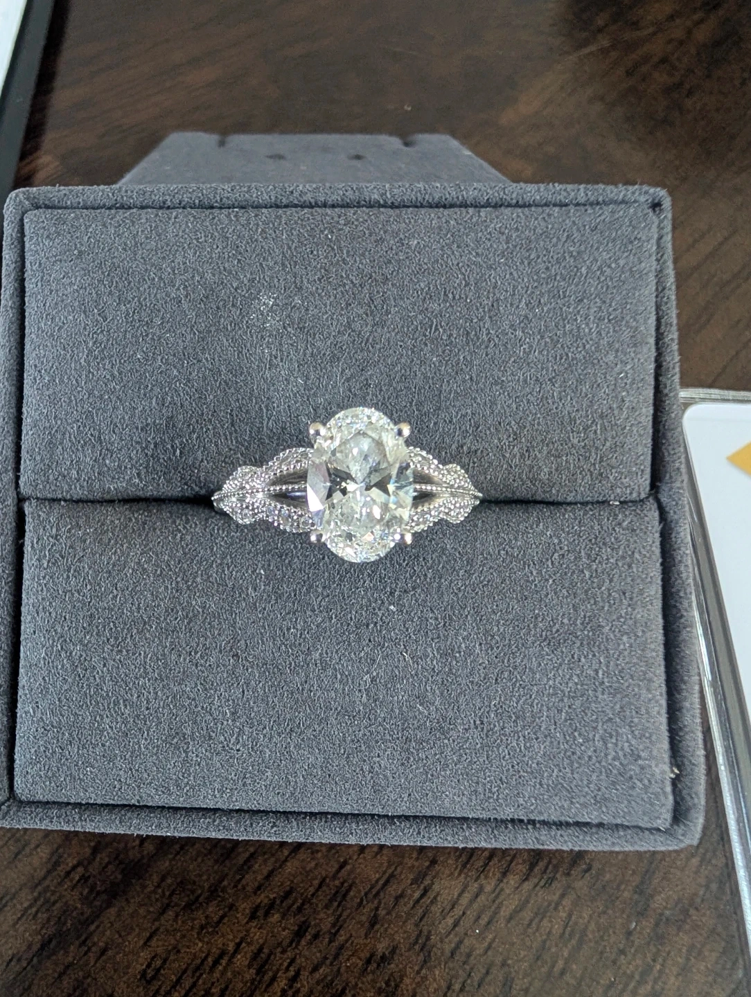 Selling a beautiful 14K white gold, vintage-inspired floral bouquet engagement ring from James Allen! The ring is a size 7 and features a laboratory-grown diamond with IGI certification. The diamond is oval brilliant cut and weighs 1.85 carats, with E colour grade and VVS2 clarity grade. It's in excellent condition and comes with the original box.