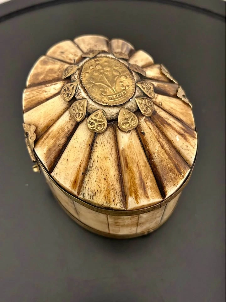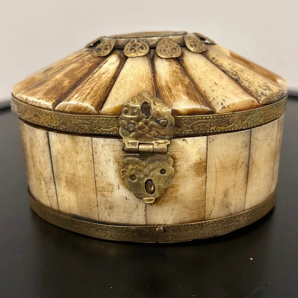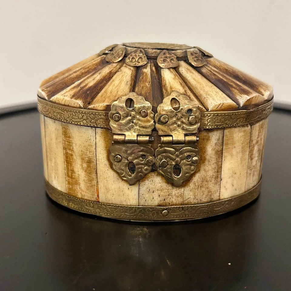 Vintage Handcrafted Bone and Brass Jewelry Box