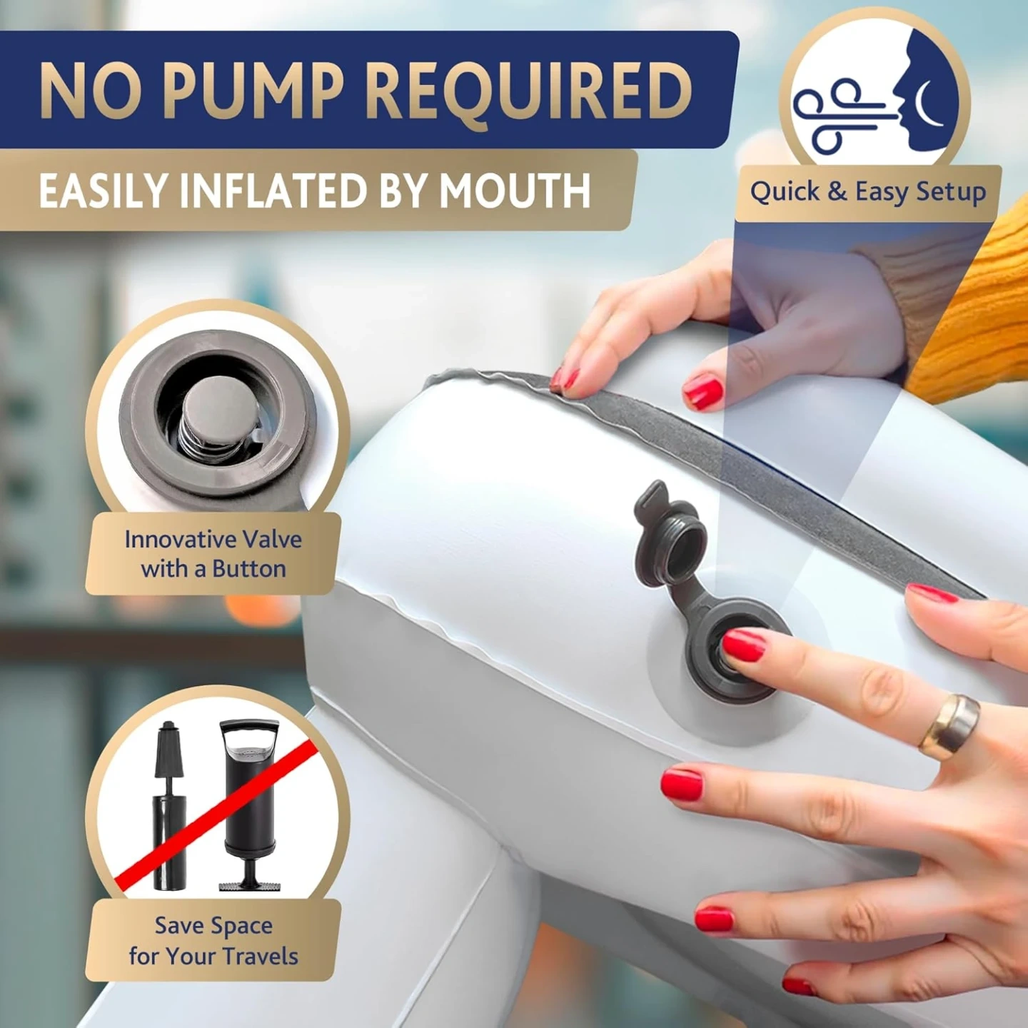 SAFE & SECURE – This airplane toddler inflatable travel bed changes an airline seat into an air mattress with straps. The baby airplane bed gives parents options, especially for long flights.