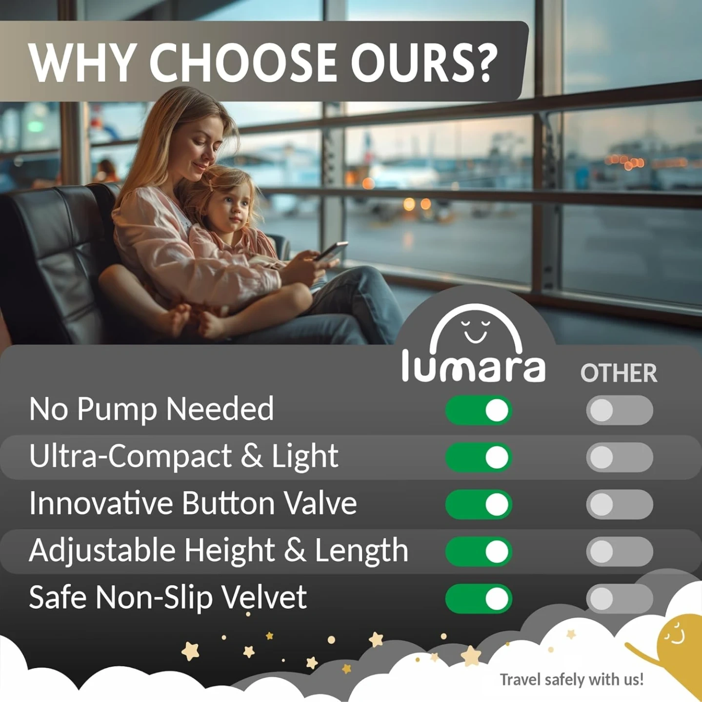 COZY TRAVEL SLEEP – Made with soft flocked material, this toddler airplane bed ensures a snug rest. An inflatable neck support adds extra comfort, so your child sleeps soundly while you relax.