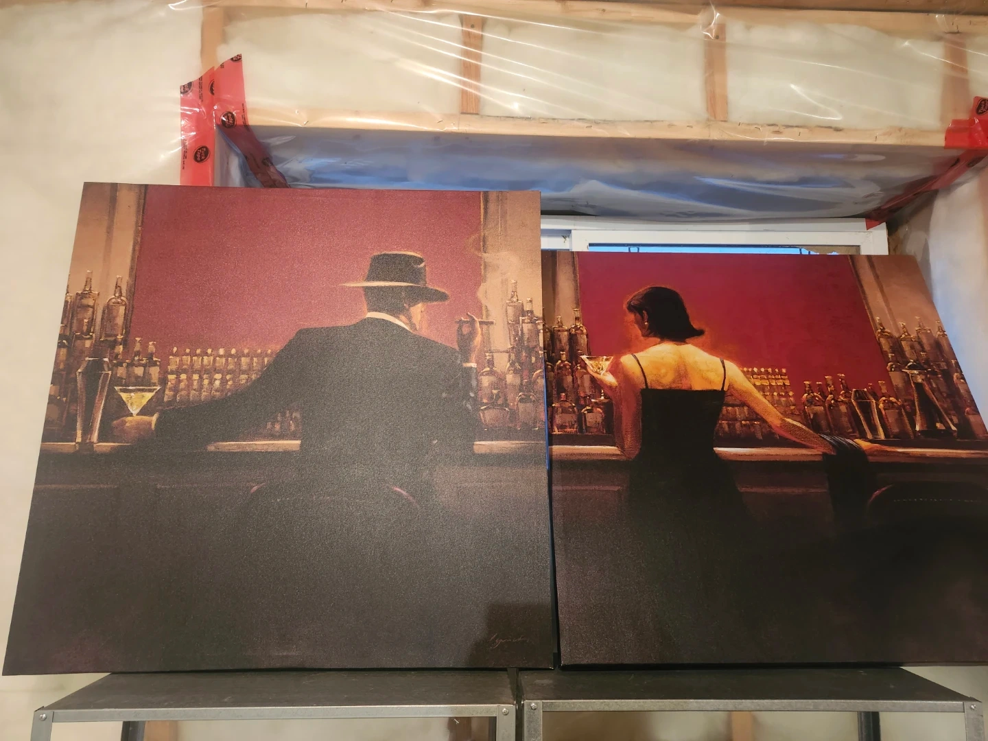 Selling a set of two canvas art pieces depicting bar scenes. They're in great shape and ready to add a touch of class to your space
