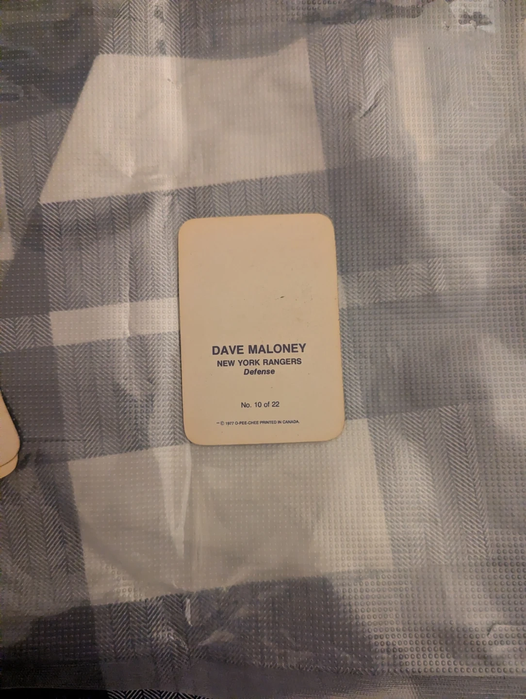 Selling a Dave Maloney New York Rangers hockey card. It's card number 10 of 22. The card is from 1977 O-Pee-Chee, printed in Canada
