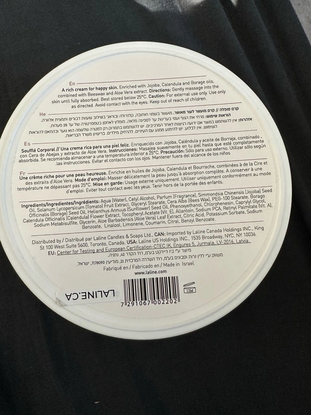 Indulge in luxurious skincare with Laline Body Souffle, available in Cherry Blossom and Vanilla Pink Pepper scents, each containing 350 grams or 12.34 ounces of crème soufflée. These delightful body soufflés are used, but still offer a lavish moisturizing experience. Perfect for pampering your skin with enchanting fragrances. Get ready to envelop yourself in the creamy, soft texture that leaves your skin feeling silky smooth and delicately scented. Available scents: