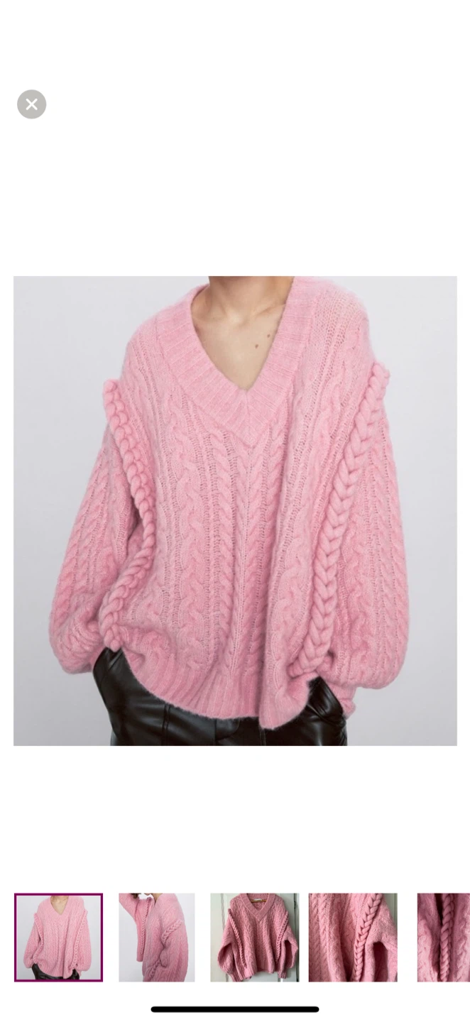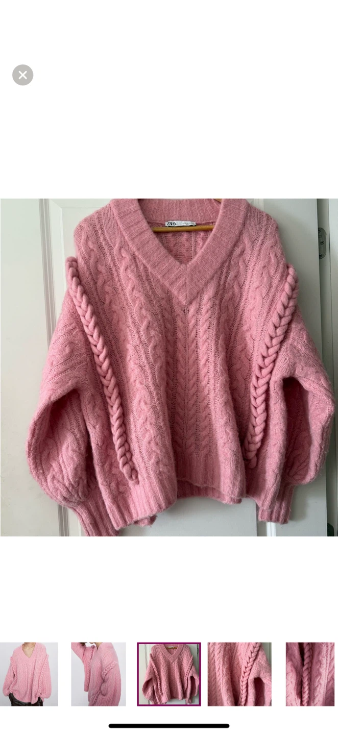 Selling a super cute Zara cable knit sweater! It's a lovely shade of pink and has a cozy, oversized fit. Perfect for staying warm and stylish!
