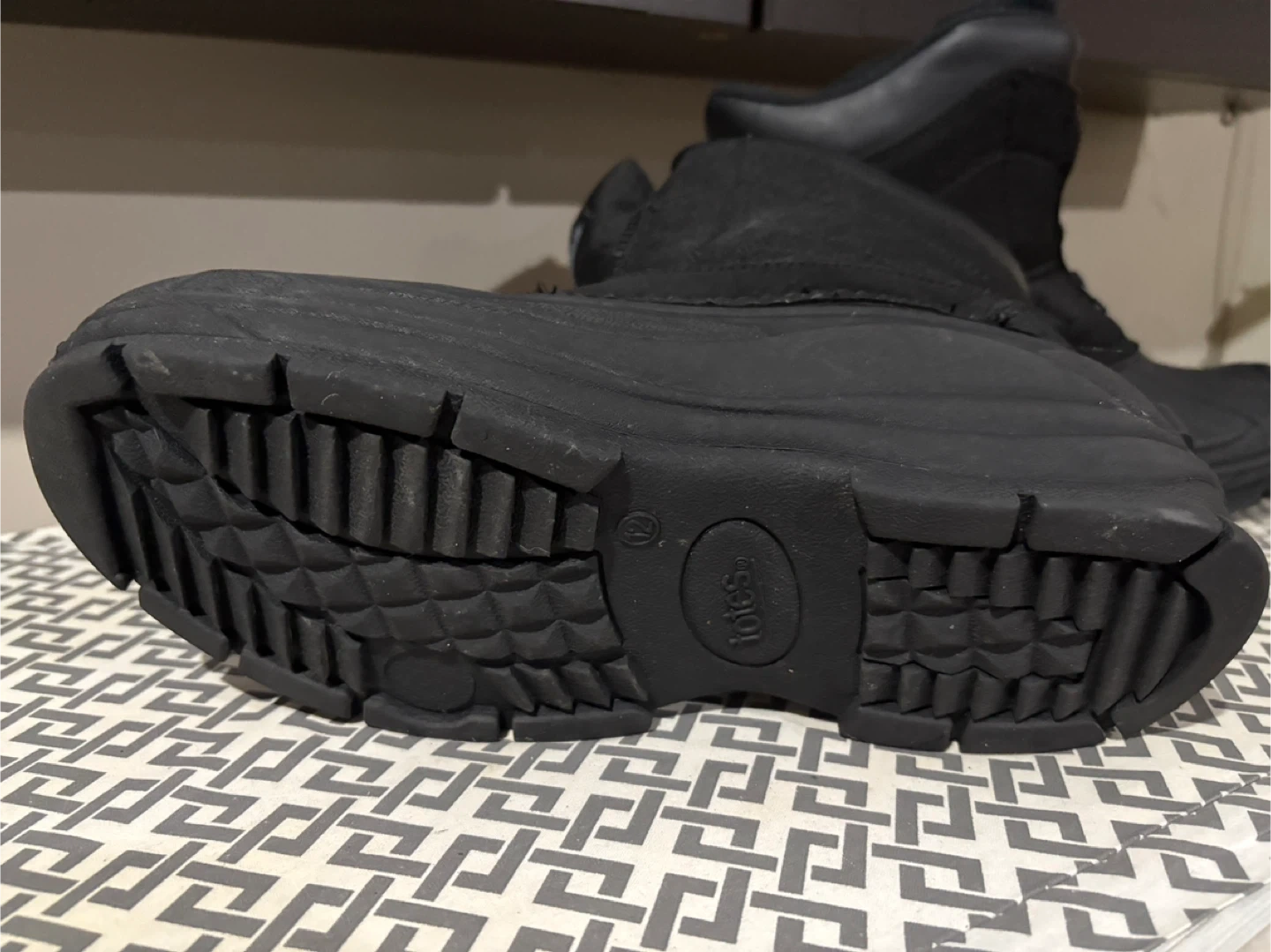 Totes ankle boots, men’s size 10, waterproof and lightly used with plenty of life left. These rugged boots handled rain, mud, and light snow without a single leak. Insulated interior keeps feet warm, while the grippy rubber sole provides solid traction. Zipper closure is smooth and secure, with no damage to uppers or lining.
