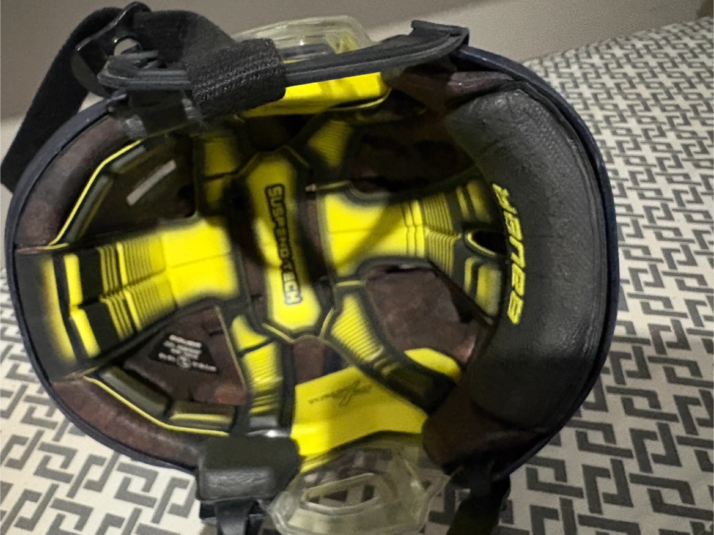 Selling a Bauer hockey/skating helmet for kids in size XS (6 5/8 - 6 7/8) or 51-55.5 cm. It's in good condition and ready for the rink!