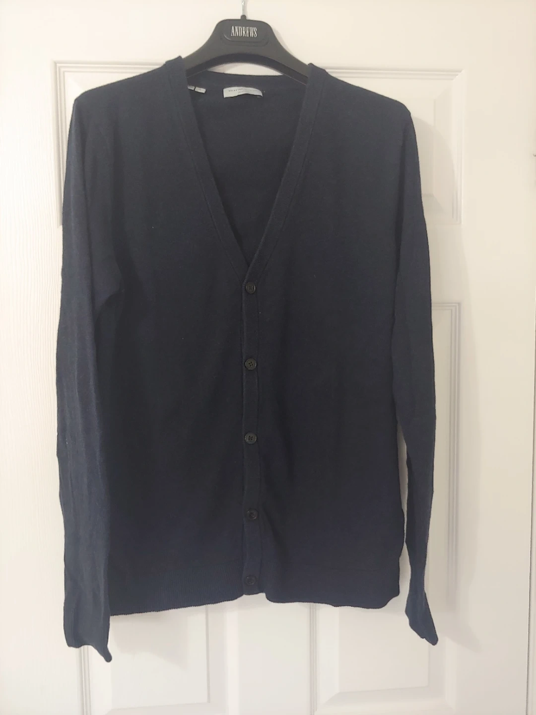 847Selected Homme Identity cardigan in size M. The cardigan is a classic navy colour and in great condition. 90% cotton 10% silk. Worn once, in excellent condition.