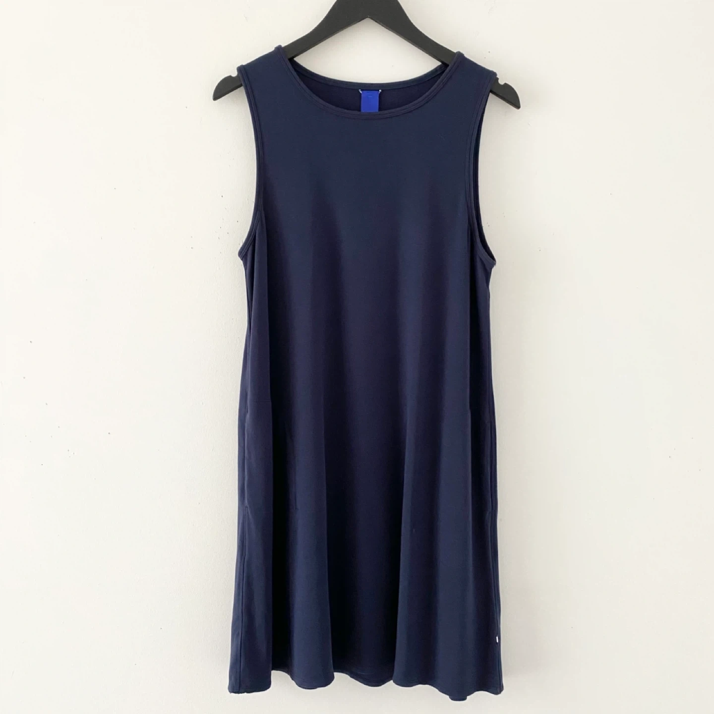 615Pick up only in Leslieville (Queen and Pape) Check out other listings! Kit and Ace sleeveless dress with side seam pocket and timeless silhouette. Made of medium weight knit in a navy colour. It's super soft, stretchy and drapes beautifully. There's no staining, snags or damage. It's clean and in excellent condition. Size L Approximate measurements laid flat Shoulder 13.25” Pit to pit 19” Center back length 35”