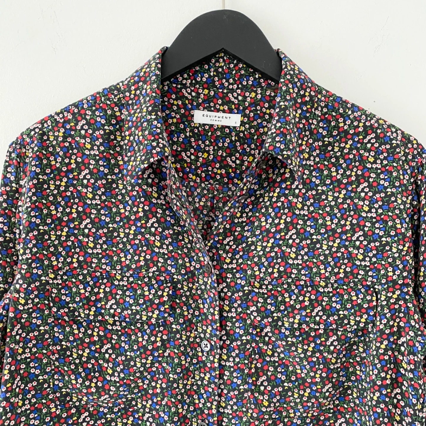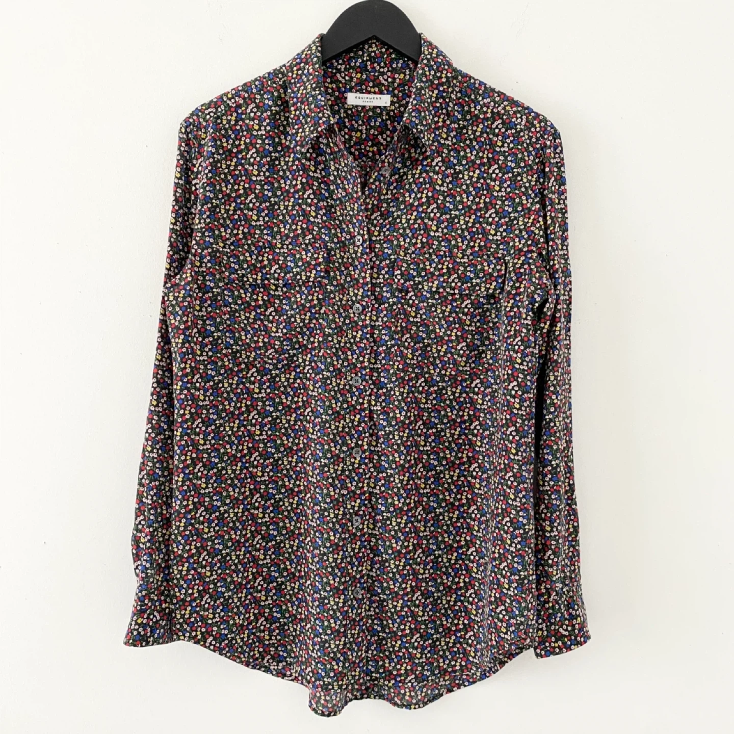 615Pick up only in Leslieville (Queen and Pape) Check out other listings! Equipment signature button-up blouse. Features patch pockets with flaps. Made of lightweight 100% silk in a floral ditsy print. It is soft, luxe and drapes beautifully. IWell made - inside seams are finished with french seams for extra clean finish and quality.There's no staining, snags or damage. It's clean and in excellent condition. Size S Approximate measurements laid flat Shoulder 17.5” Pit to pit 20.5” Shoulder to cuff 23.25” Center back length 30”