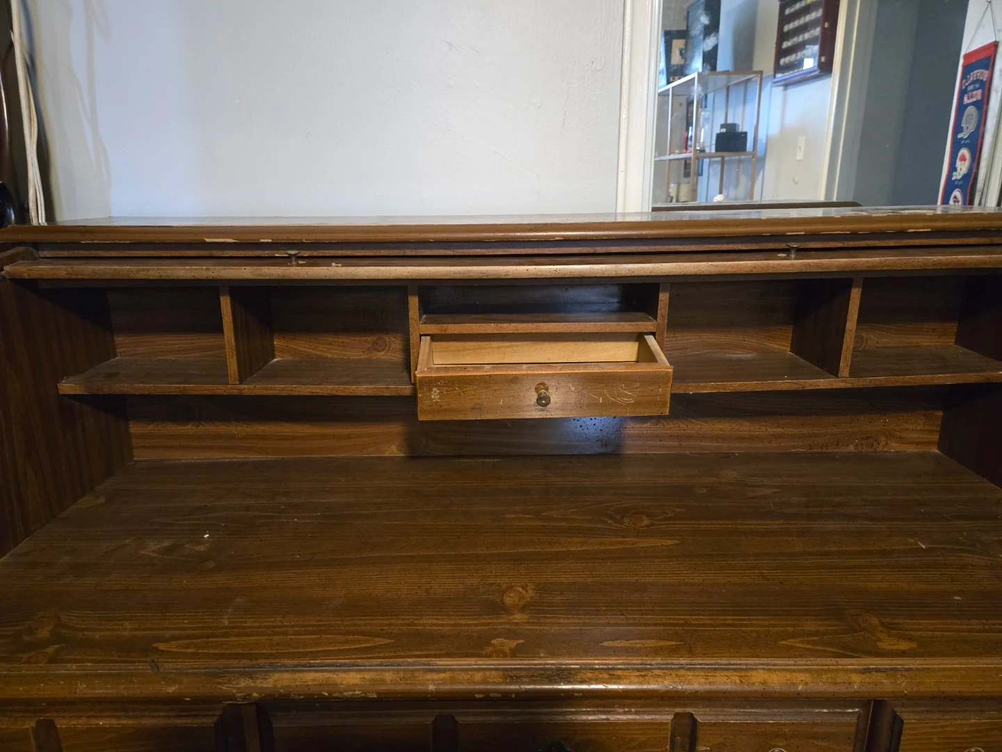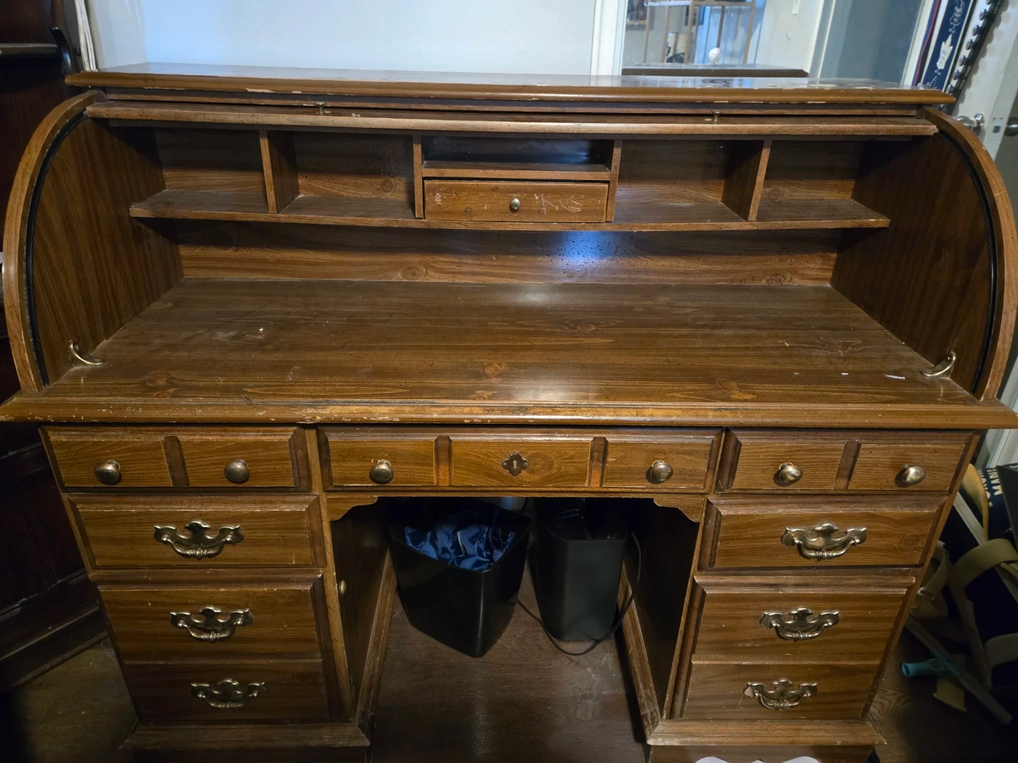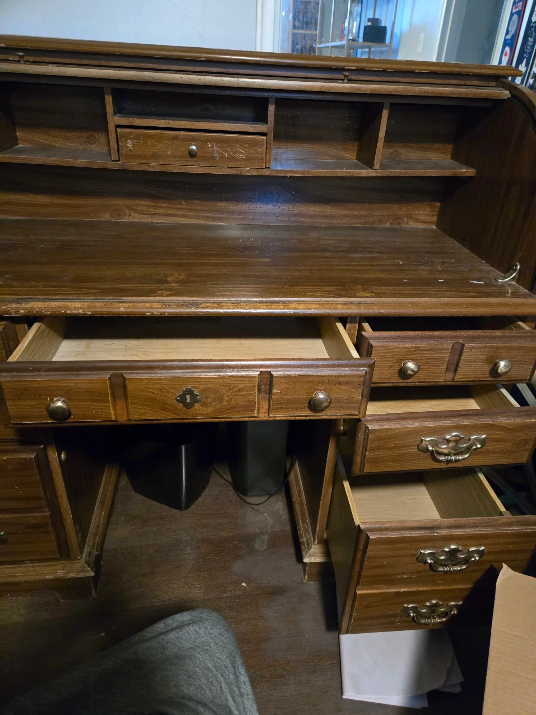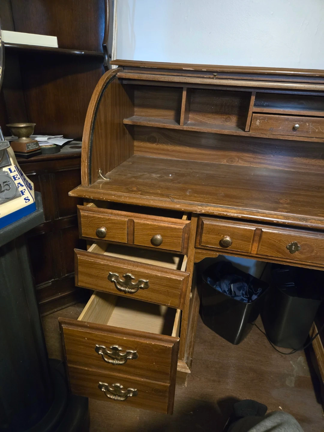 Selling a vintage roll top desk. It's a beautiful piece of furniture with lots of character. It has a number of drawers and shelves for storage. Bought from a movie set company, believed to have been used for the the private I. Pick up only. Lawrence and kennedy.