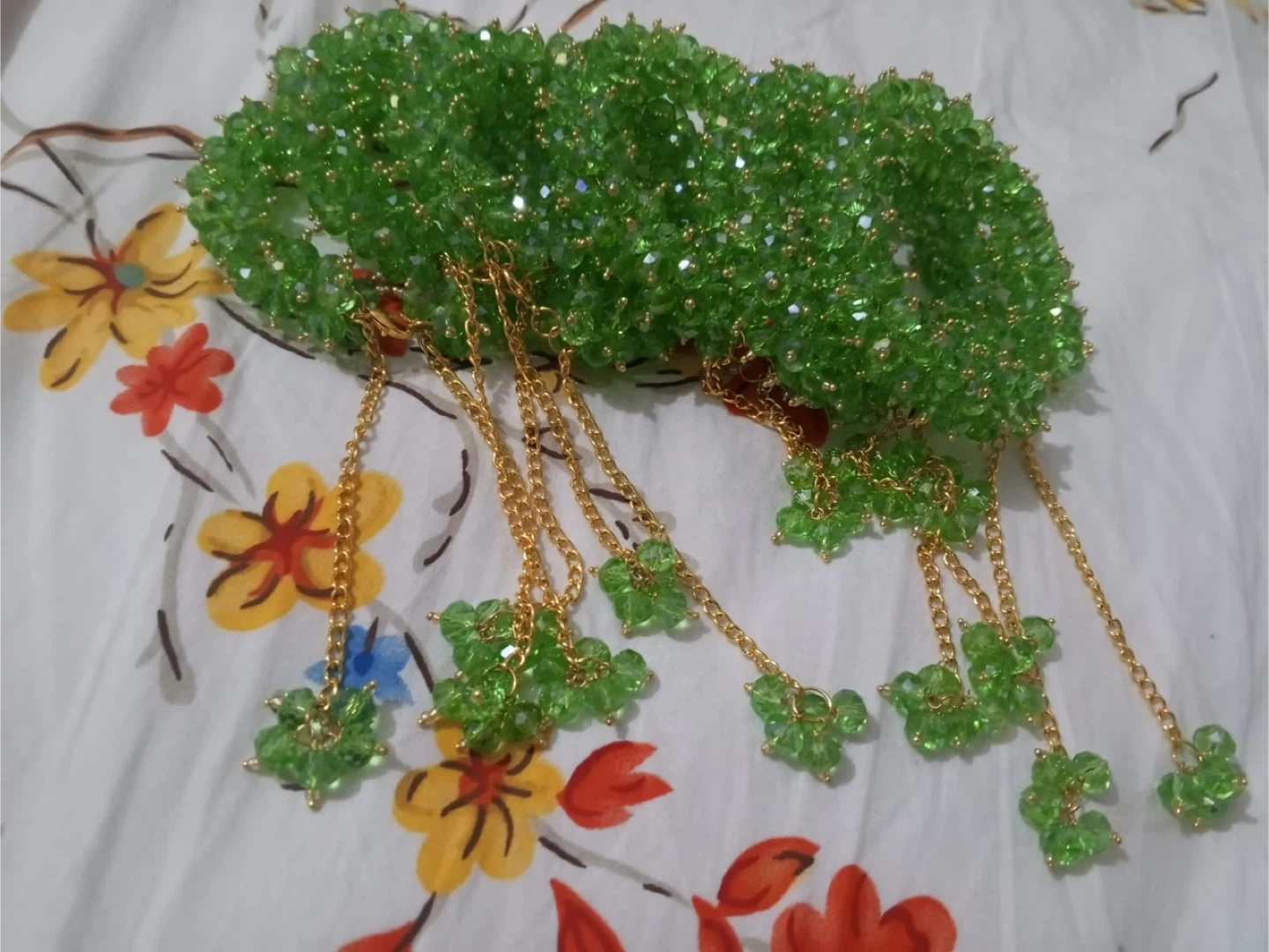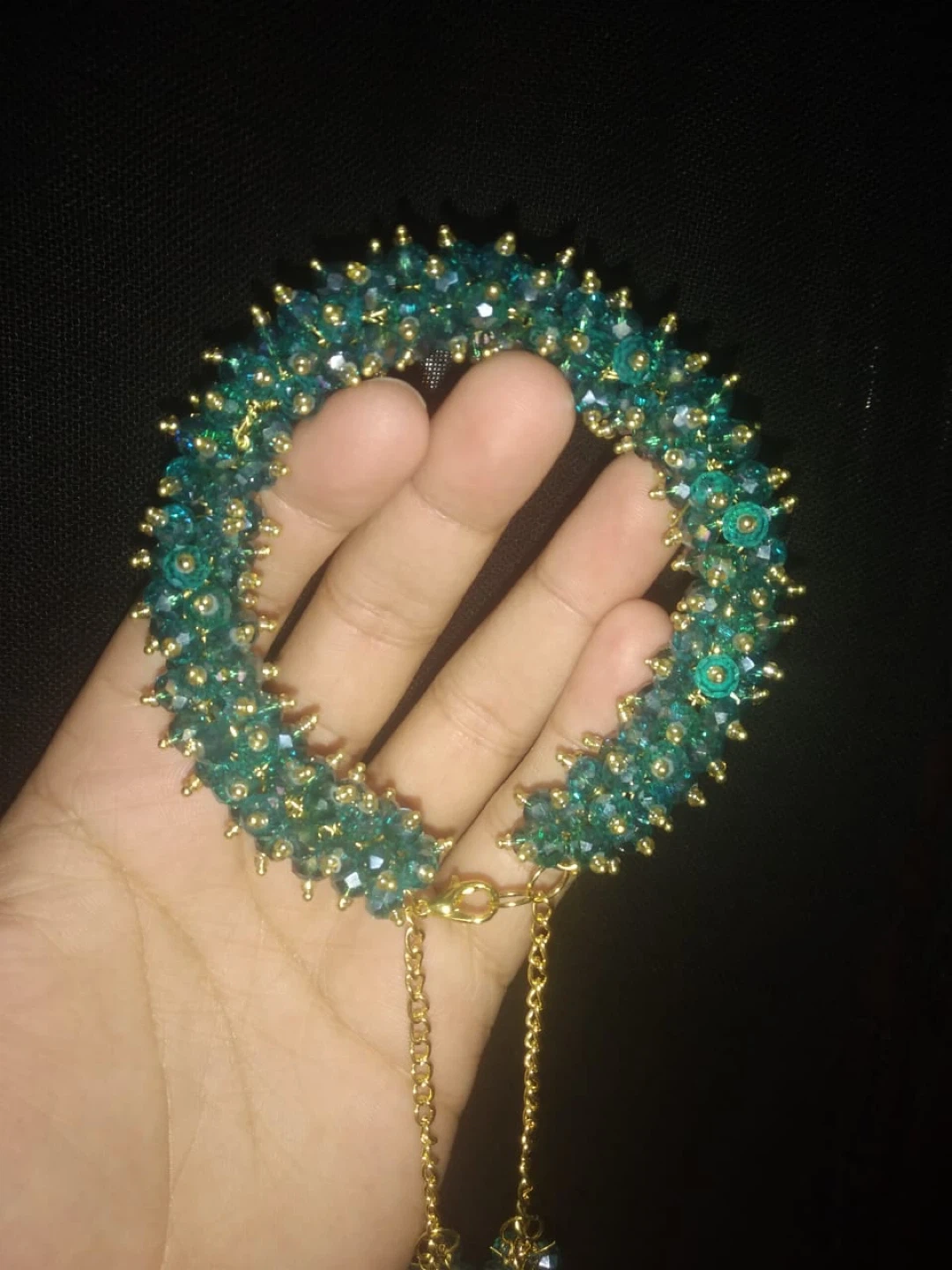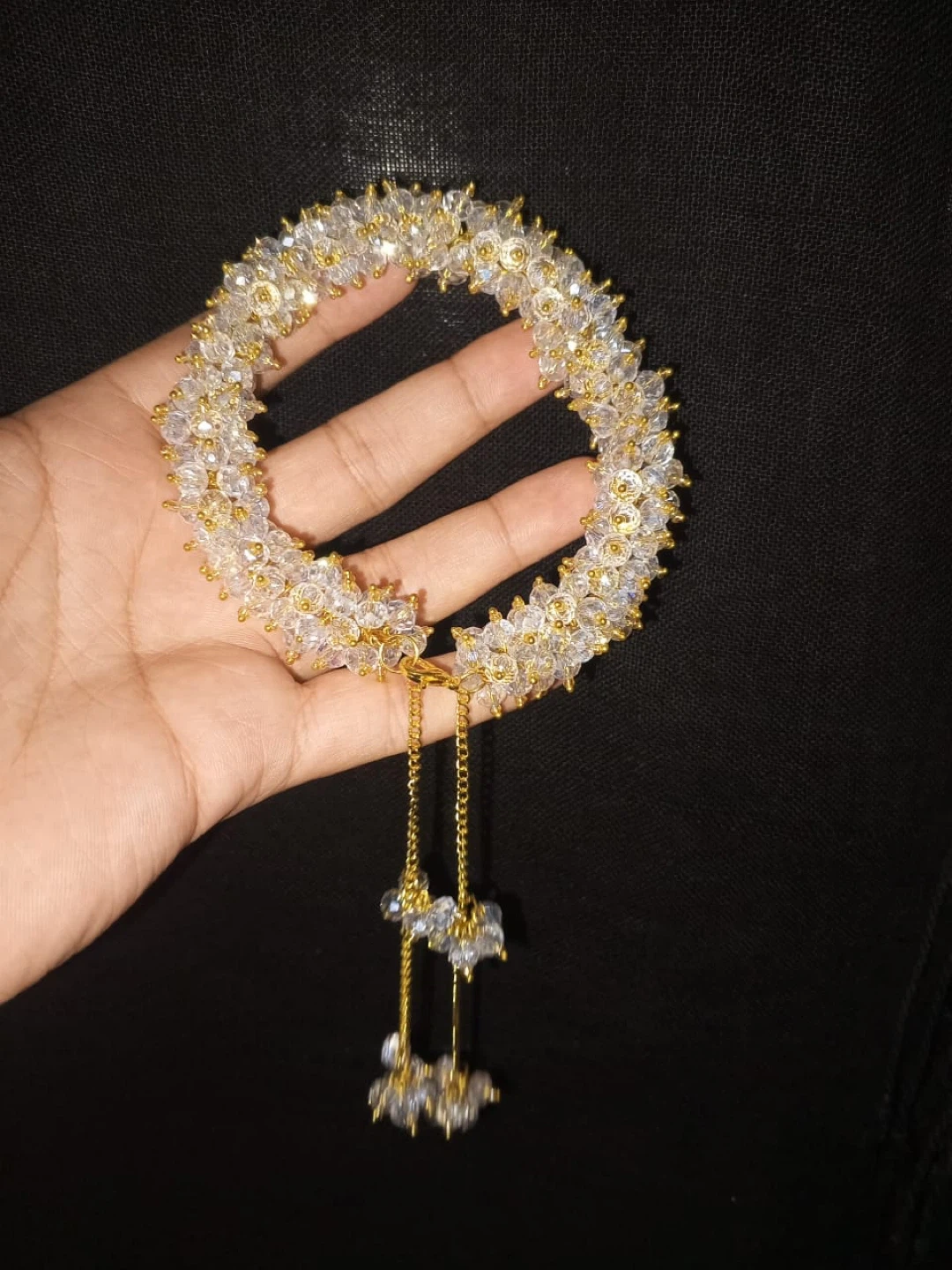 Handmade Crystal Beaded Bracelet with Chain Tassels
