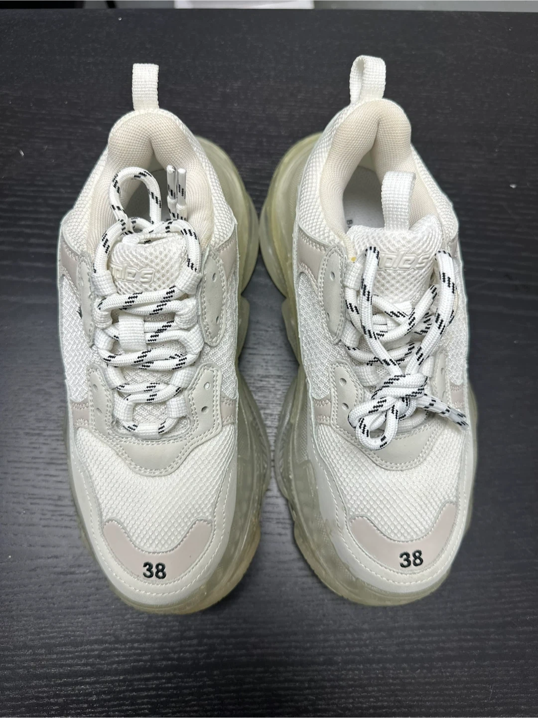 Selling a pair of Balenciaga Triple S sneakers in size US 8. They are in good condition and have a unique, chunky design. Perfect for adding a statement to your wardrobe!