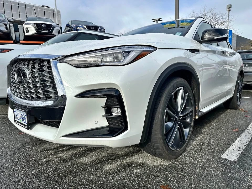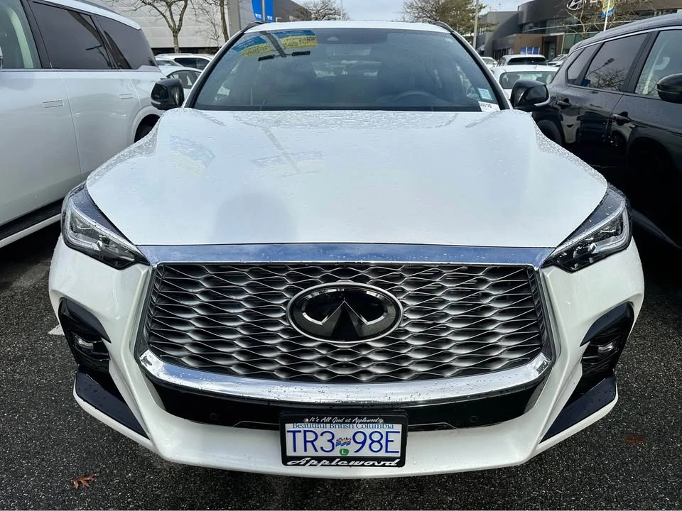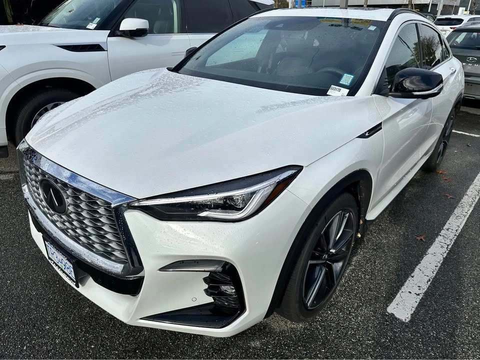 75HUGE SAVING 2025 INFINITI QX55 ESSENTIAL AWD White exterior. Grey interior. Brand new. Never registered. Demo. • 2.0L VC-Turbo 4-cylinder engine / continuously variable transmission (CVT) / Intelligent All-Wheel Drive • 268 hp and 280 lb-ft of torque • Distinctive coupe-inspired crossover design • 20" alloy wheels / LED headlights and taillights • Dual-display infotainment (8" upper + 7" lower) with navigation • Wireless Apple CarPlay & Android Auto • Bose® Performance Series premium audio • Heated leather-appointed seats / heated steering wheel / power driver’s seat with memory • Power panoramic moonroof / hands-free power liftgate • ProPILOT Assist, blind-spot warning, forward emergency braking, and lane-departure warning Call/Text Kaveh at 604*353*5857 to schedule a viewing.