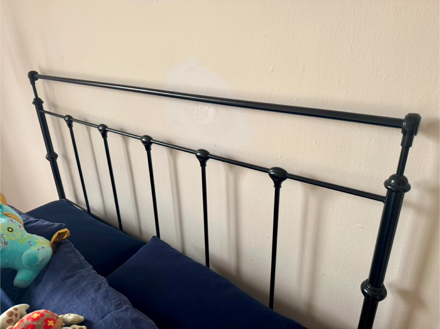 Selling a queen black metal bed frame & queen box spring in good condition. It's a sturdy frame that will look great in any bedroom. It's easy to assemble and disassemble, making it perfect for moving. It has a classic design that will never go out of style.
