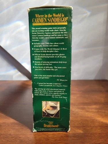 This is certainly a memorable vintage collectors item, as anyone growing up in the 90s as a fan of the Where in the World Is Carmen Sandiego? TV show would attest. It can certainly bring back memories, both of the era, the show and game itself, and the computers of the day.