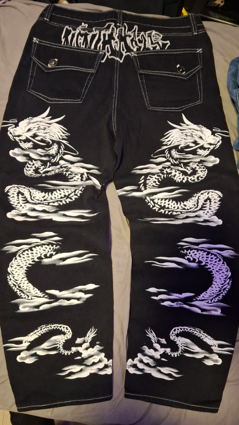 Selling a pair of Ninth Hall Ambush jeans in size 30. They feature a cool dragon design on the back. Worn once or twice pretty much brand new
