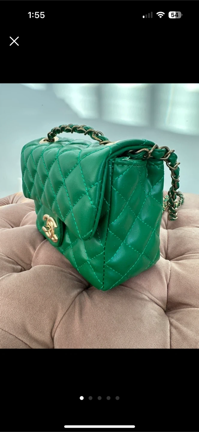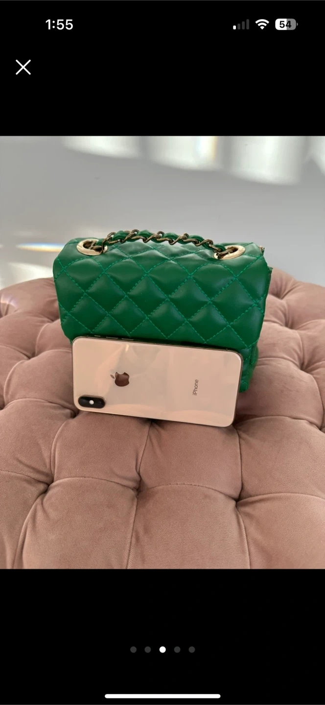 36Selling a cute green quilted bag with a gold chain strap! It's in great condition and perfect for adding a pop of colour to any outfit