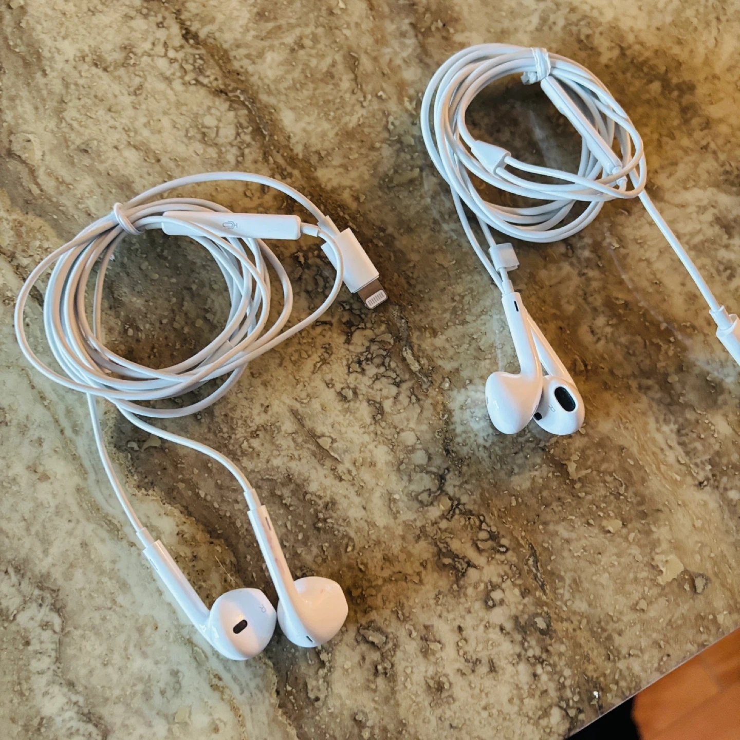 Selling two pairs of Apple EarPods with Lightning connectors! They're in great shape and ready for a new home. Perfect for your iPhone or iPad. Like new because I got a usb-c phone right after getting them. Sterilized. Would trade for Apple 3.5mm or Usb-c earpods. 25 each both for 40.