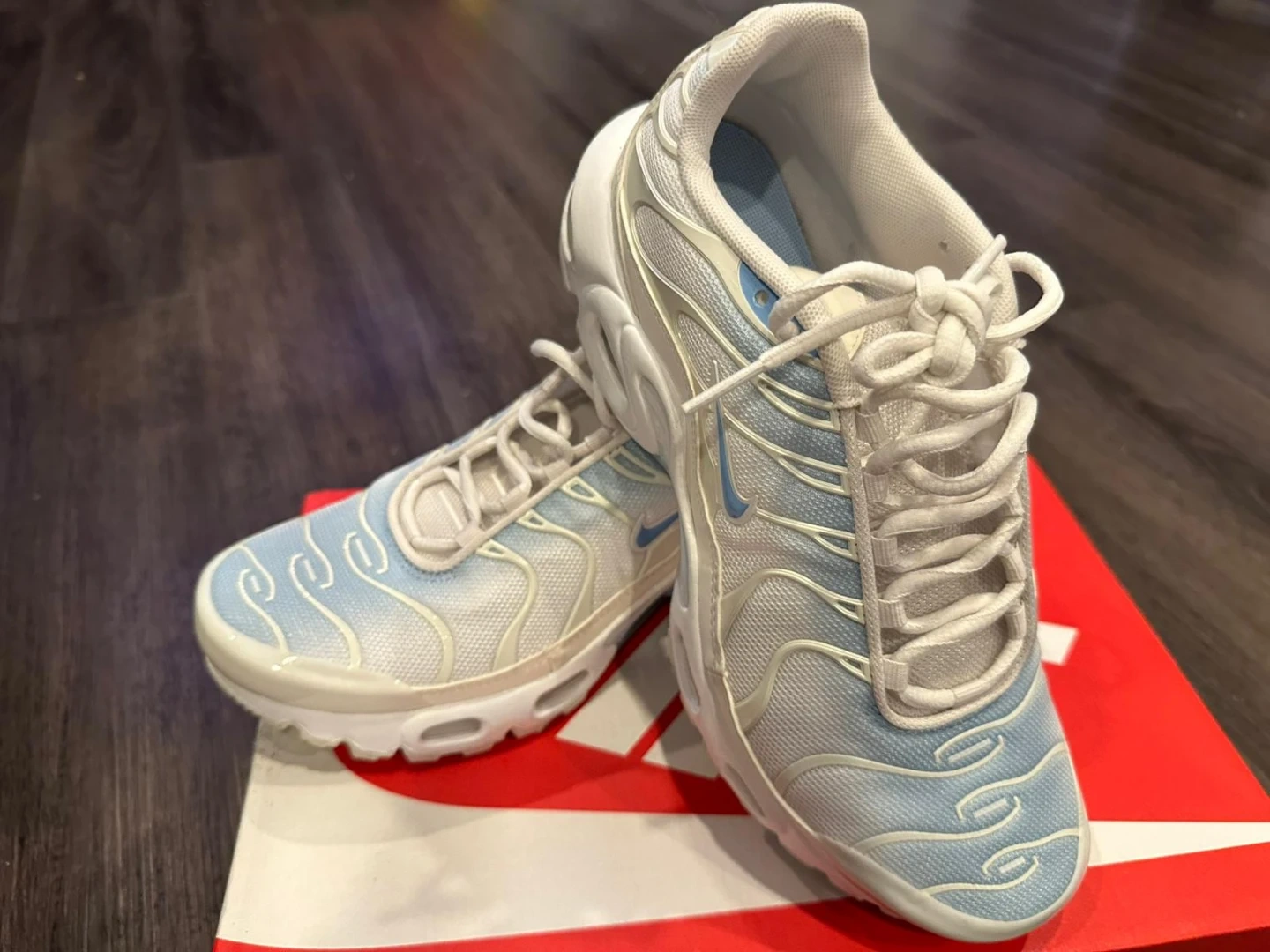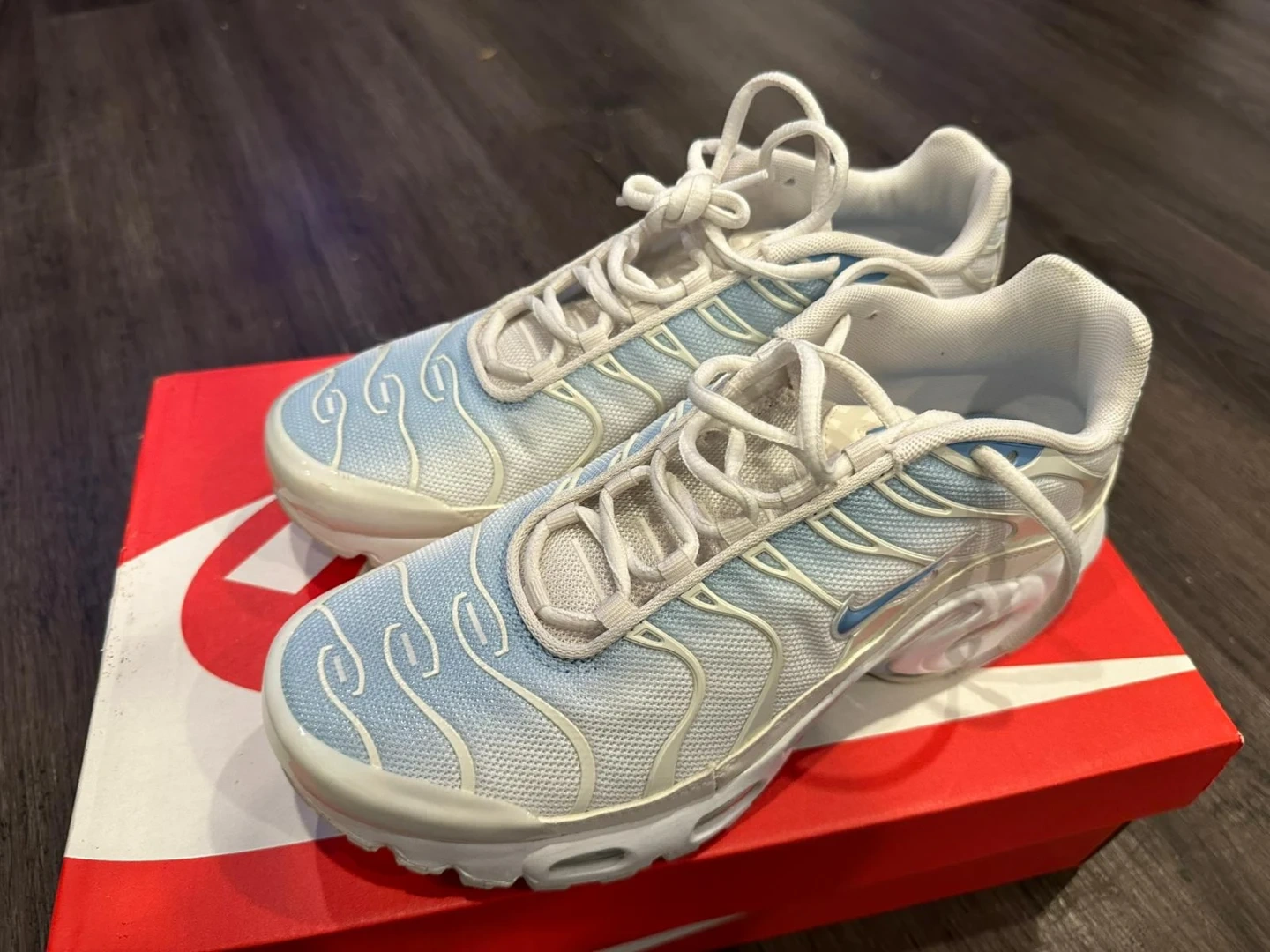 Here are a pair of Nike Air Max Plus sneakers in a nice light blue and white colourway! They are a US size 8and are in great condition. Perfect for adding a fresh touch to your style