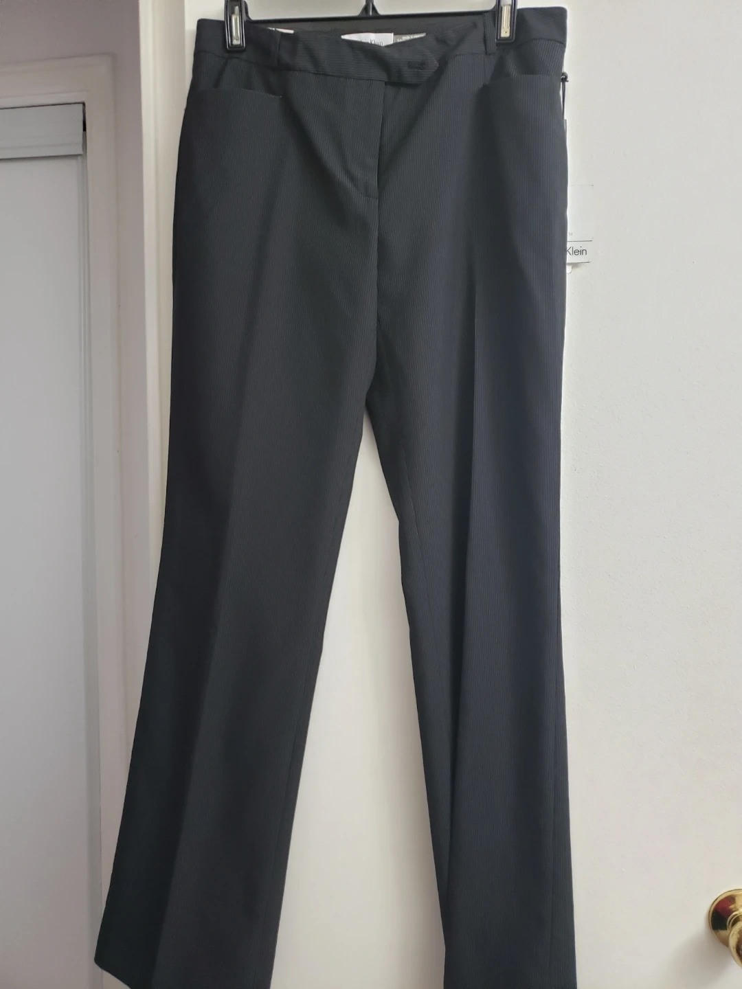 I'm selling a pair of Calvin Klein modern fit pants in black! They are size 4. Also pictured are Liz Claiborne pants, size petite 8 and a pair of black size 12 pants from Lord & Taylor.