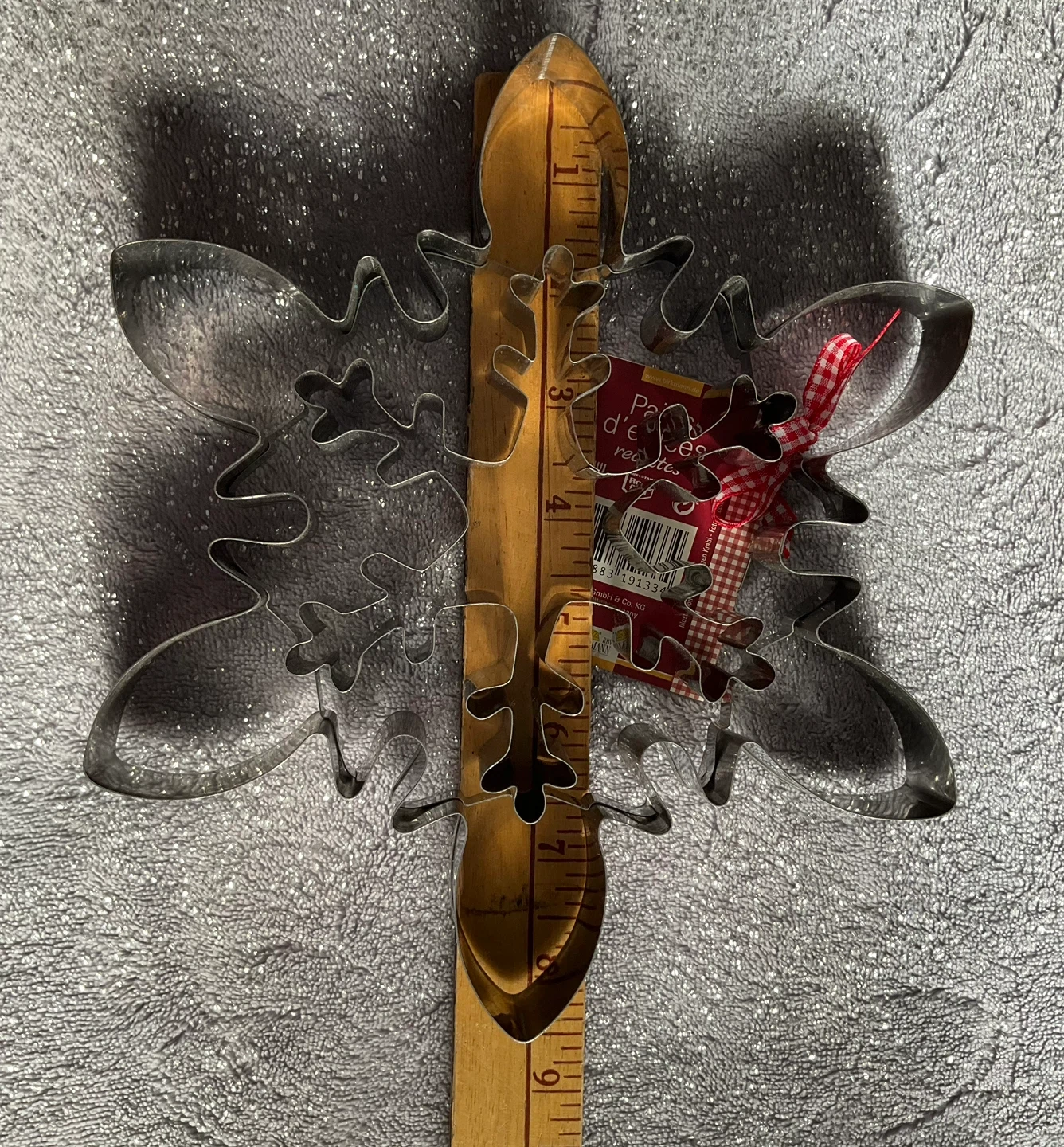 Here's a Blumann snowflake cookie cutter set! It comes with a cute gingerbread recipes booklet tied with a red and white checkered ribbon
