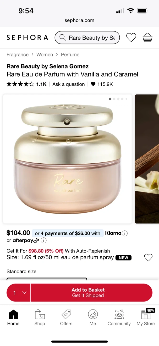 Rare Beauty by Selena Gomez Eau de Parfum It's a warm and spicy scent, without parabens and cruelty-free. Key notes include caramel, vanilla, and sandalwood. Retails for $104 ($117 after tax). I’ve used maybe 10 sprays. Only selling because I recently found a scent that feels more “me”. This is your sign to get a full perfume for a great discount.