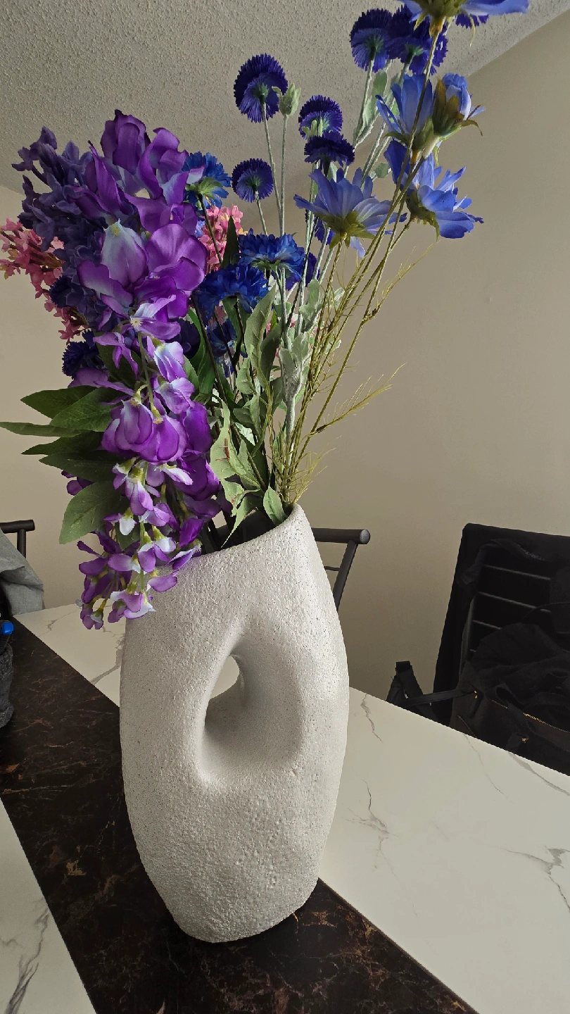 Add a touch of modern elegance to your home with this unique white decorative vase! Its eye-catching design is sure to be a conversation starter. Perfect for displaying your favourite flowers or as a standalone art piece
