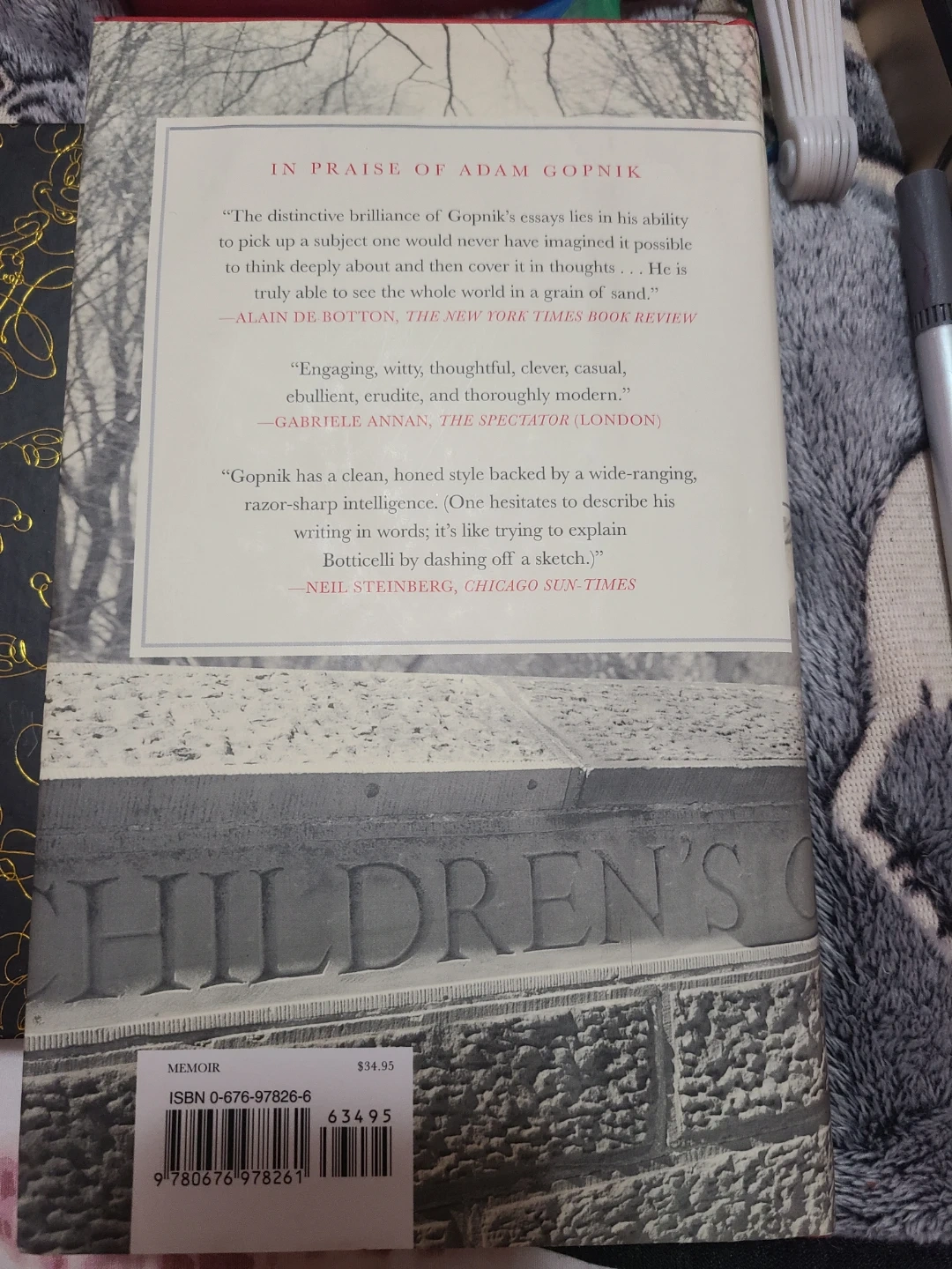 Selling "Through Children's Gate" by Adam Gopnik! This memoir is a collection of essays that showcase Gopnik's ability to deeply and thoughtfully cover a wide range of subjects. A great read for anyone who enjoys insightful and engaging writing!