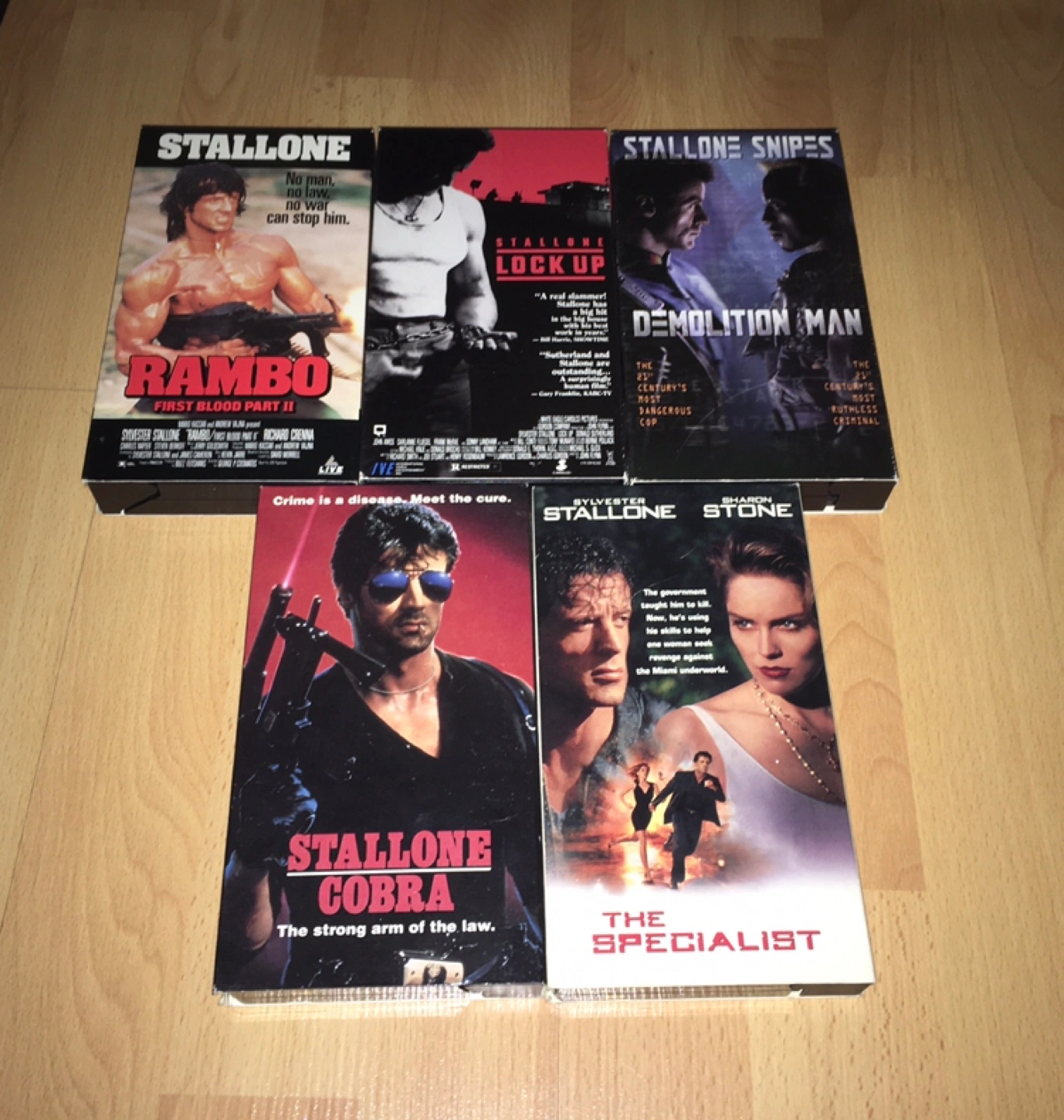 Selling 5 Sylvester Stallone VHS tapes.