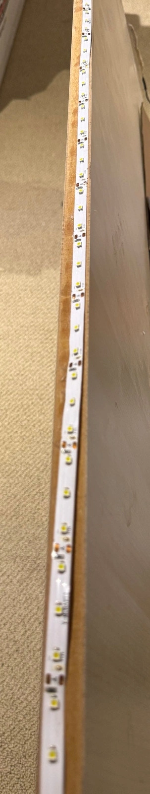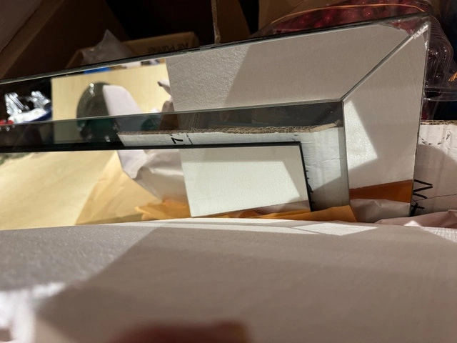 Special design sleek wall mirror with an LED board (detached for easy transport). LED lights come with a remote control and were tested in Europe — they worked perfectly there. Minor corner cracks — can be hidden with edge protectors or trimmed by a glass shop. Outer frame size: 205 × 80 cm Inner mirror size: 185 × 60 cm Price: $108