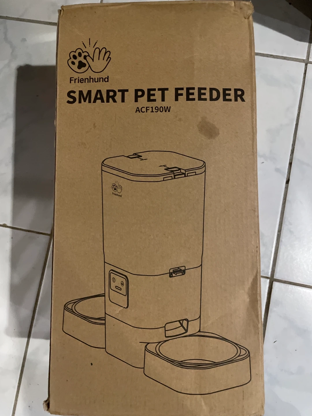 Item is relatively new Hardly used The food holder has a crack but does not affect the sturdiness of the container I'm selling a Frienhund Smart Pet Feeder, model ACF190W, ensuring your pet's feeding