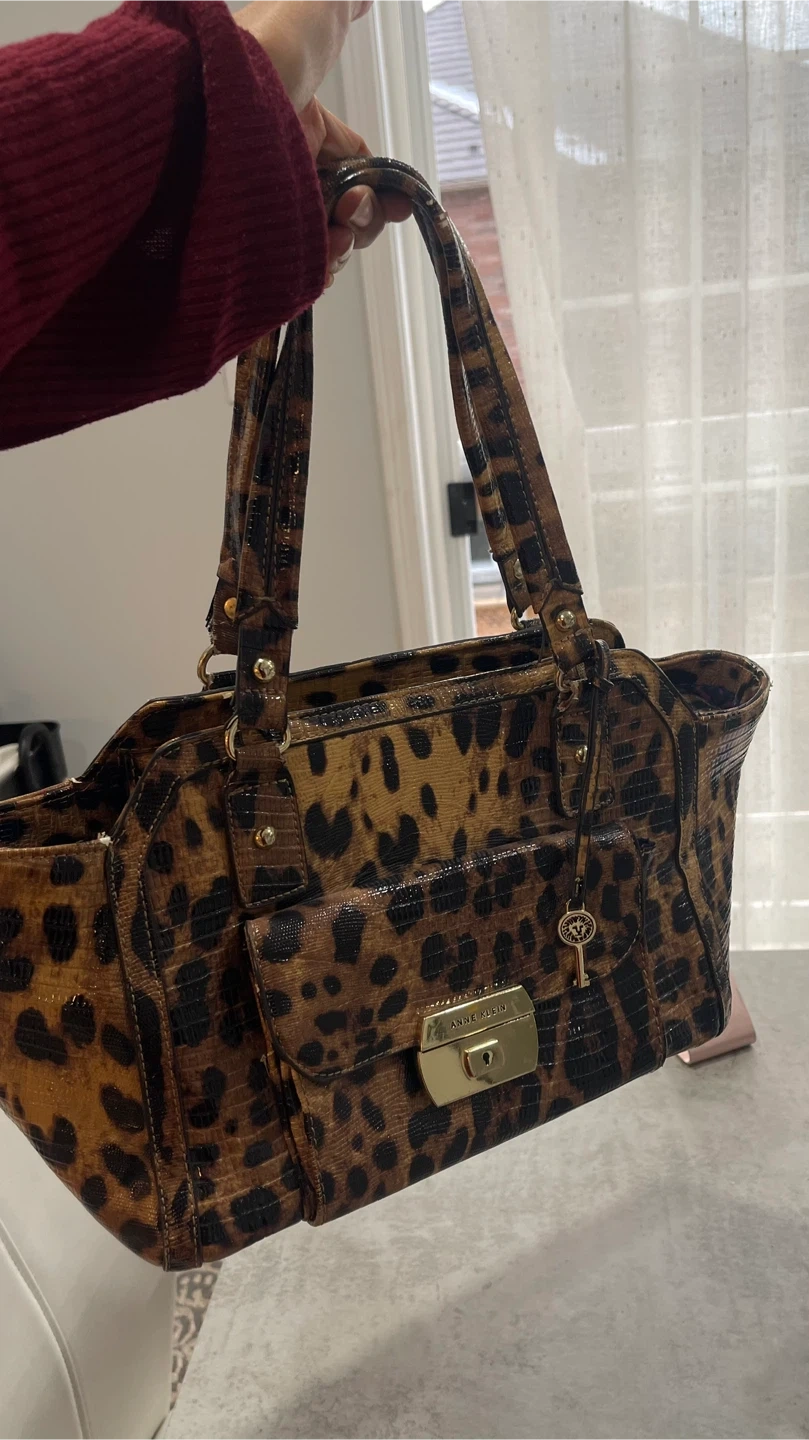 Selling an Anne Klein satchel in a stylish leopard print! This bag is perfect for adding a touch of flair to any outfit. It's in great condition and ready for a new home