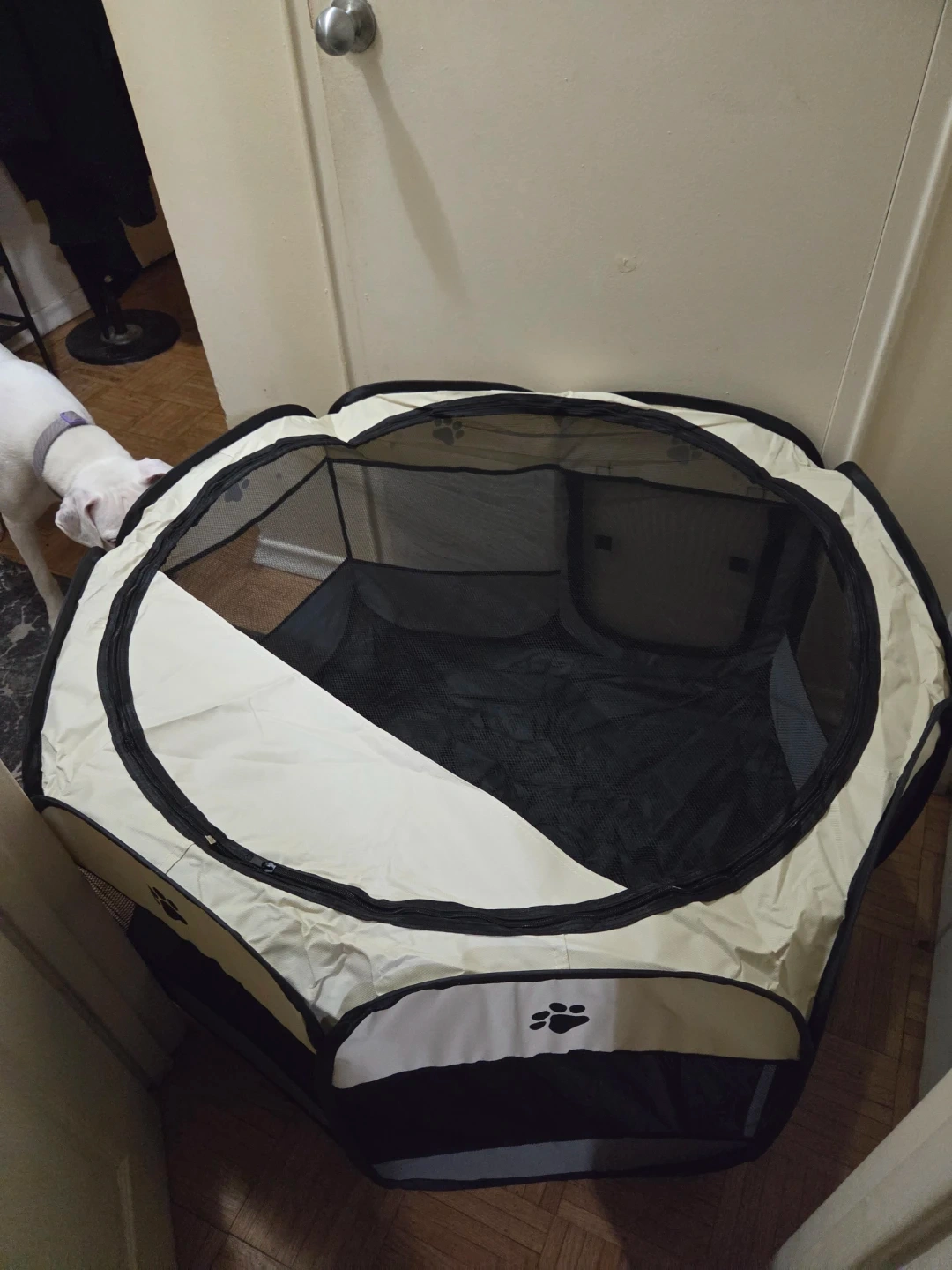 Selling a foldable pet playpen, perfect for indoor or outdoor use! It's in great shape and provides a safe and fun space for your furry friend
