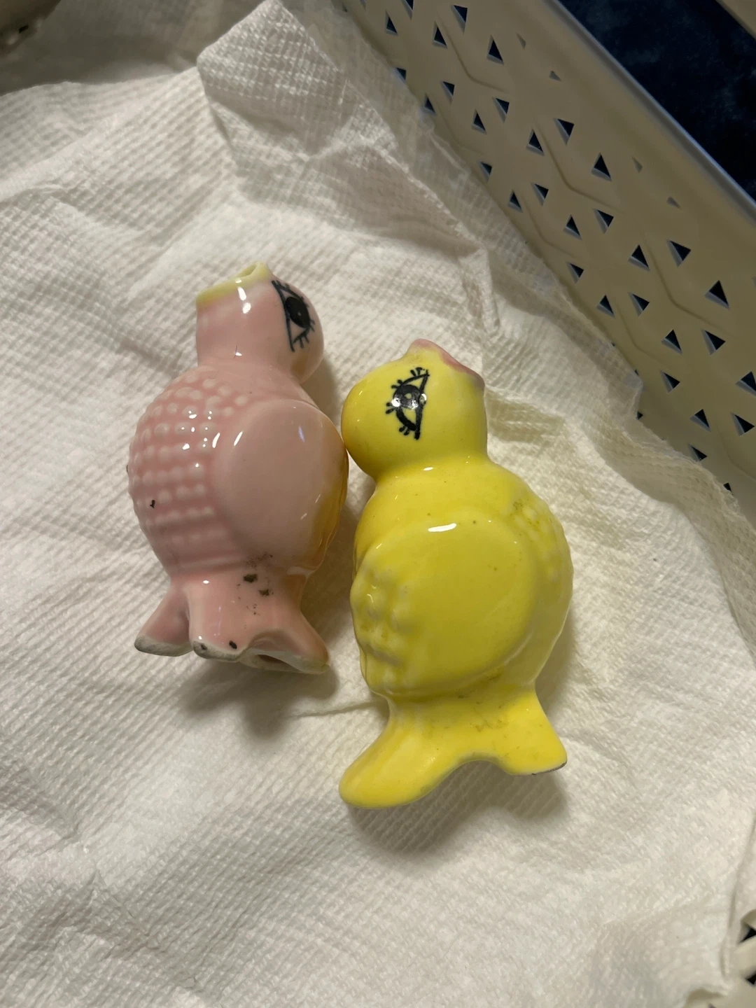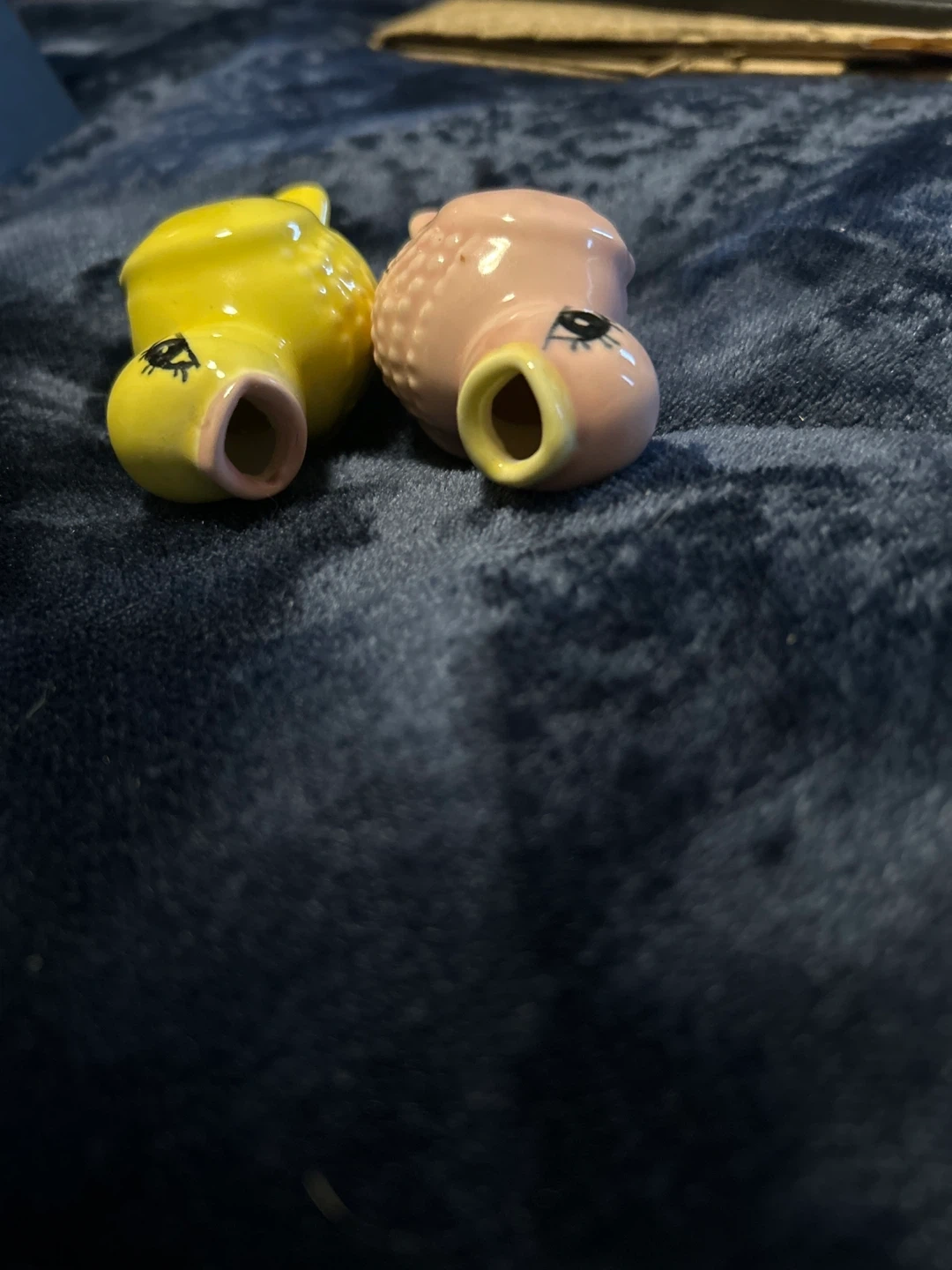 Selling a set of two vintage. Originals pie birds! One is pink and the other is yellow. They're in good condition, and would make a lovely addition to any kitchen or collection