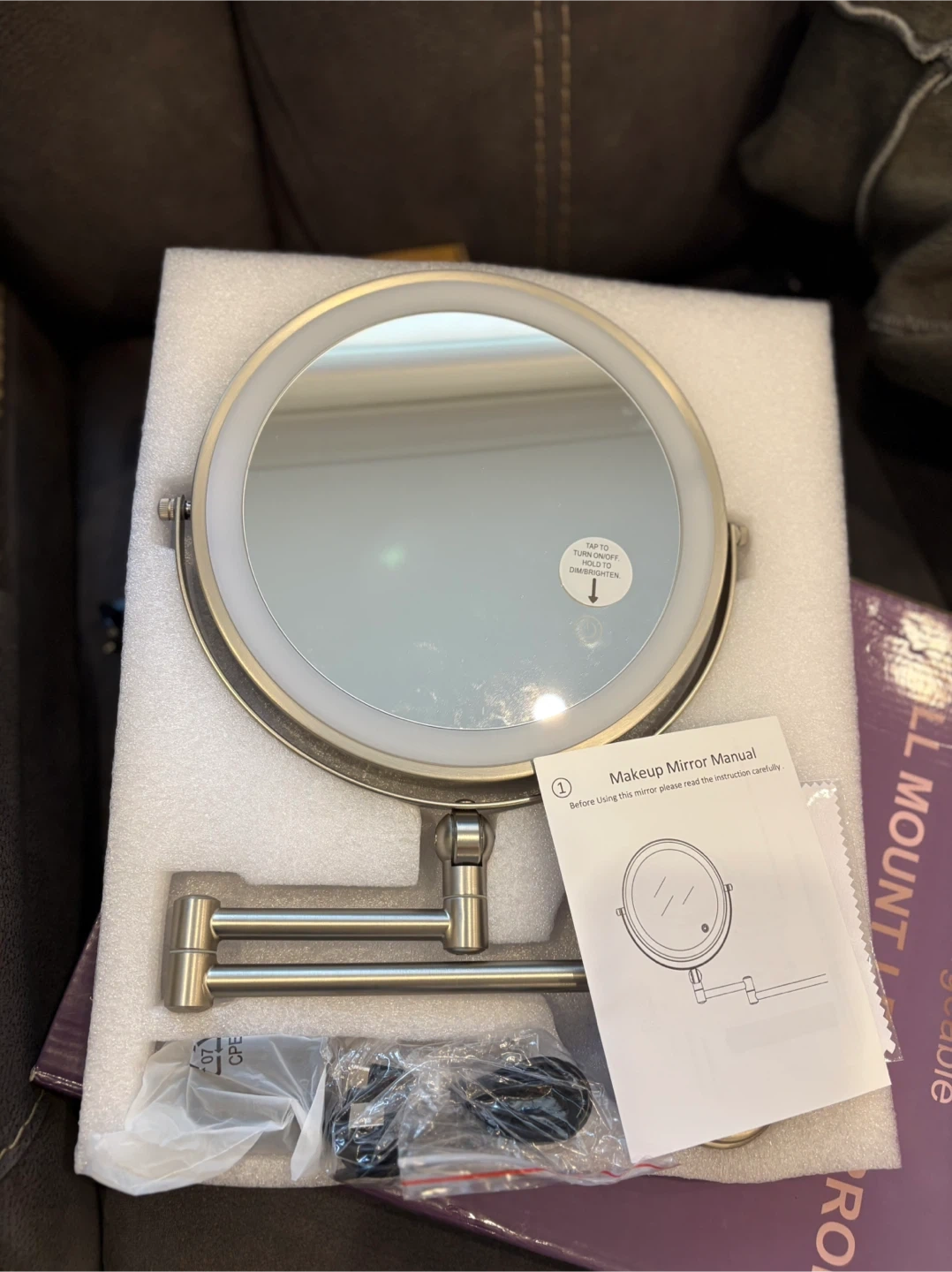 Selling a brand new, 9-inch rechargeable wall mount makeup mirror! It comes with the original box and a makeup mirror manual