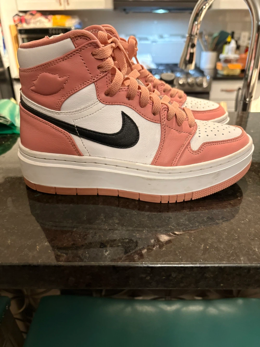 Selling a pair of Nike Air Jordan 1 Elevate High sneakers in US size 6.5. They're in great shape and ready for a new home! The colour is a lovely pink and white combination. Perfect for adding a pop of colour to your outfit!
