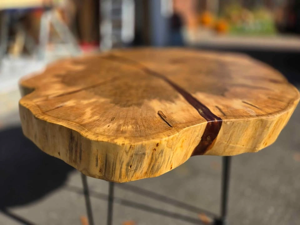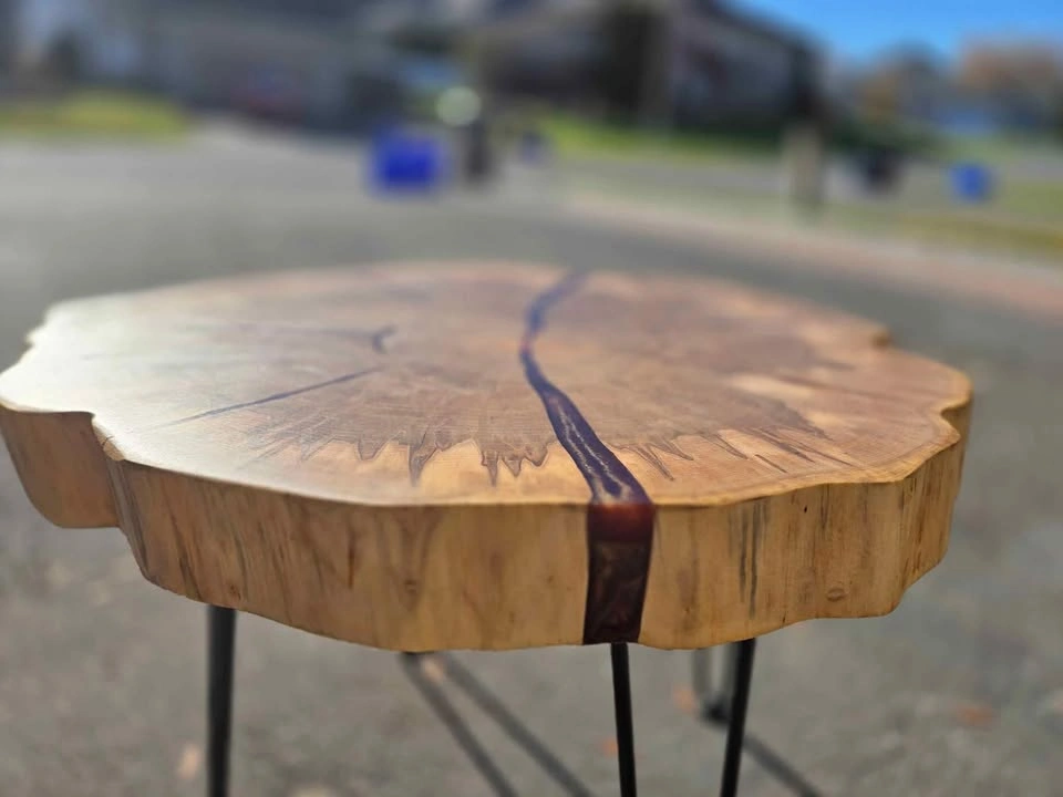 This One of a kind Ambrosia Maple Starburst pattern with Latte coloured resin instills a heart felt feeling of warmth and is the perfect place to have that morning cup of coffee. This gem is in search of its forever home; and is ready to go at anytime.