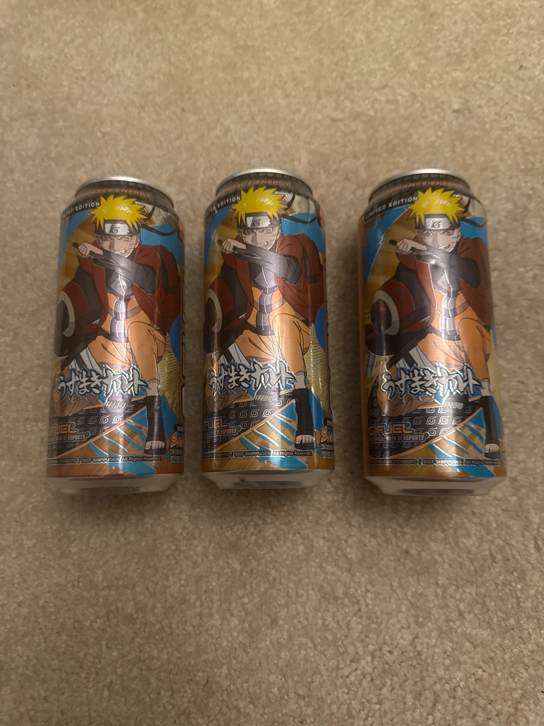 Selling 3 empty Naruto Sage Mode GFuel cans. All in good display condition β a few small dents but mostly fixed and look great. Perfect for collectors, anime fans, or room decoration.