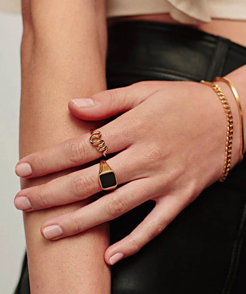 A unique, vintage-inspired take on the classic signet ring. The black spinel gemstone has a strong empowering energy and repels negativity. Style this signature piece solo, wear it on your pinky, or stack with more delicate styles.