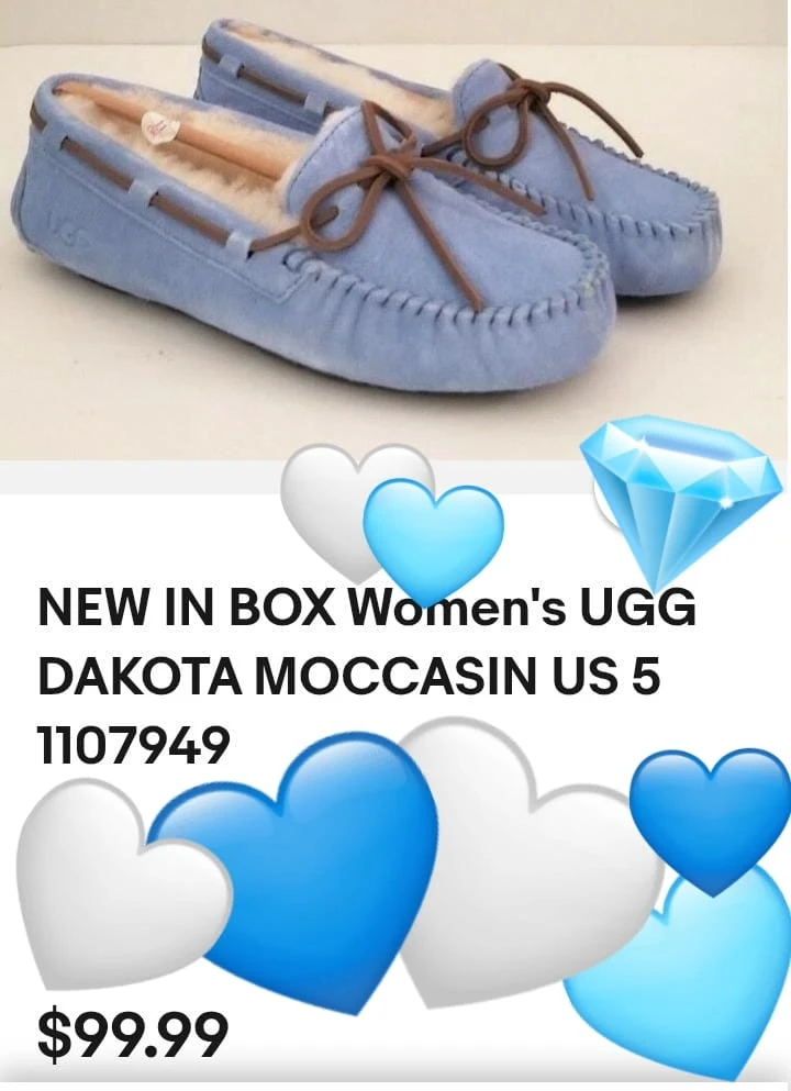 1 / 11 / 1Buy & SellUGGs moccasinsUGGs moccasins$95Sky blue uggs for women size 8.ConditionNewSize8WHERE TO MEETKings Plaza Shopping CenterView MapSELLERJessie TSheepshead Bay211 review0 chats·1 favorites·8 viewsSEND CHAT TO SELLERHi Jessie T! I’m interested in your listing.Hi Jessie T! I’m interested in your listing.Get the Karrot app to chatSign In to chat