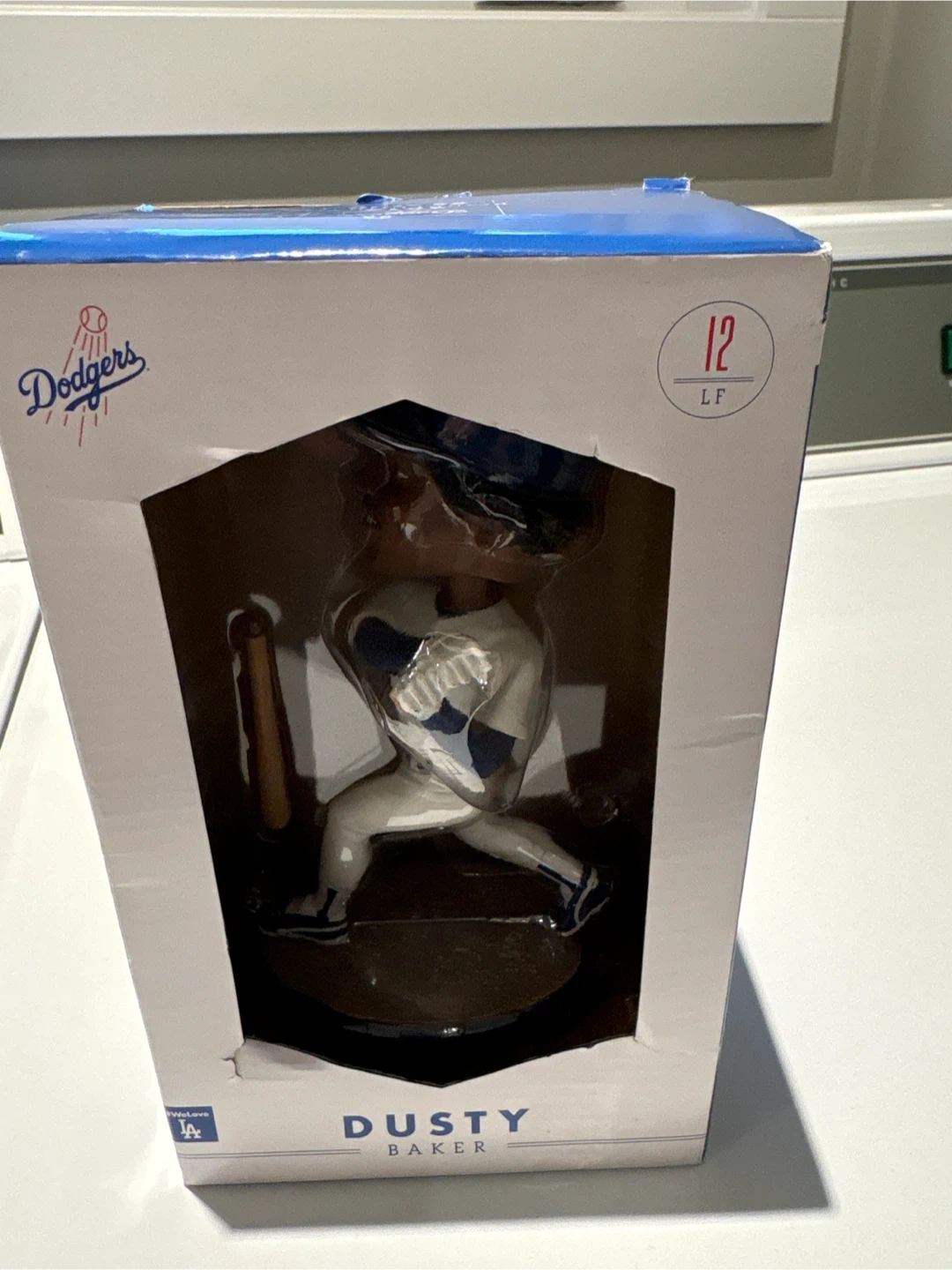 Selling a brand new in box Dodgers Dusty Baker bobblehead! It's still in its original packaging and ready for a new home. A great addition for any Dodgers fan or bobblehead collector!