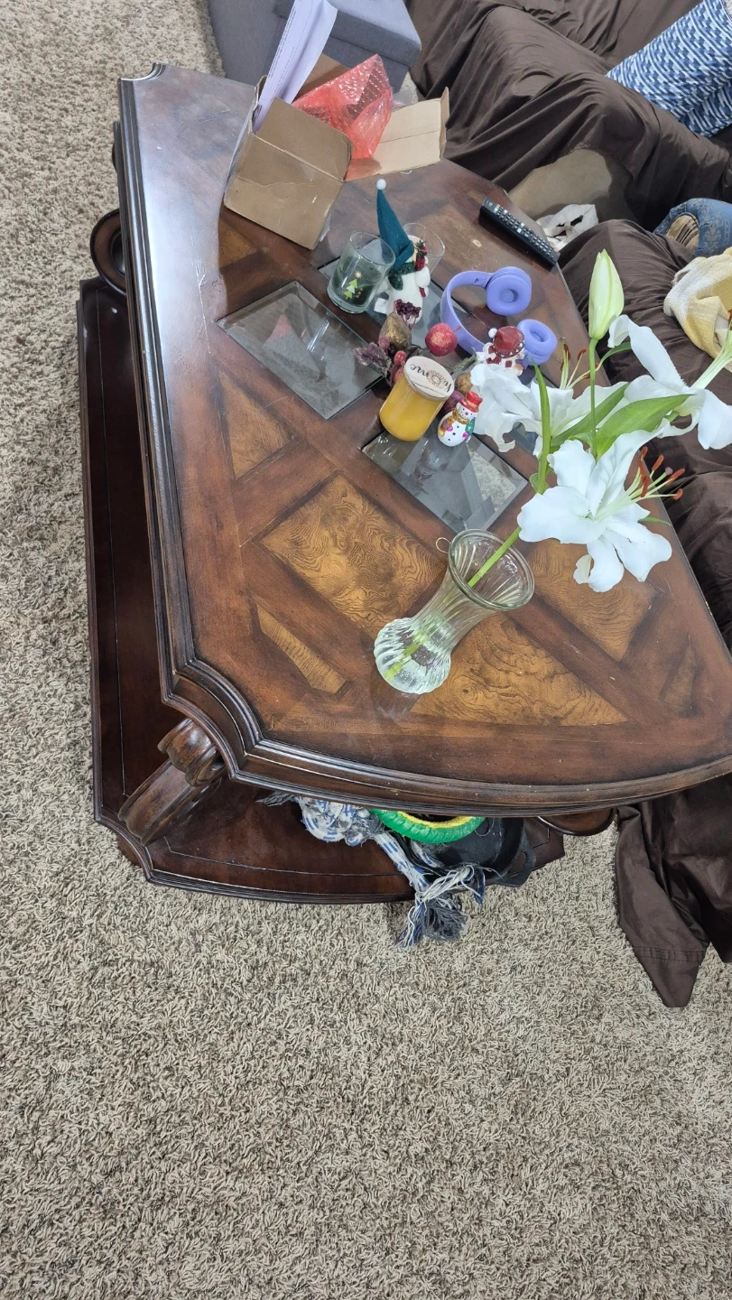 Refinished Solid Wood Accent Table – Midnight Teal Elegance